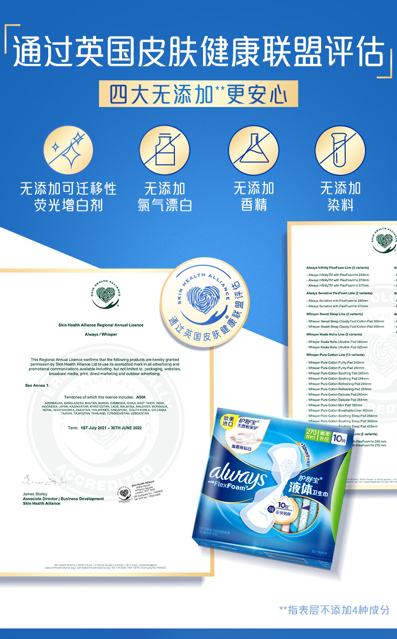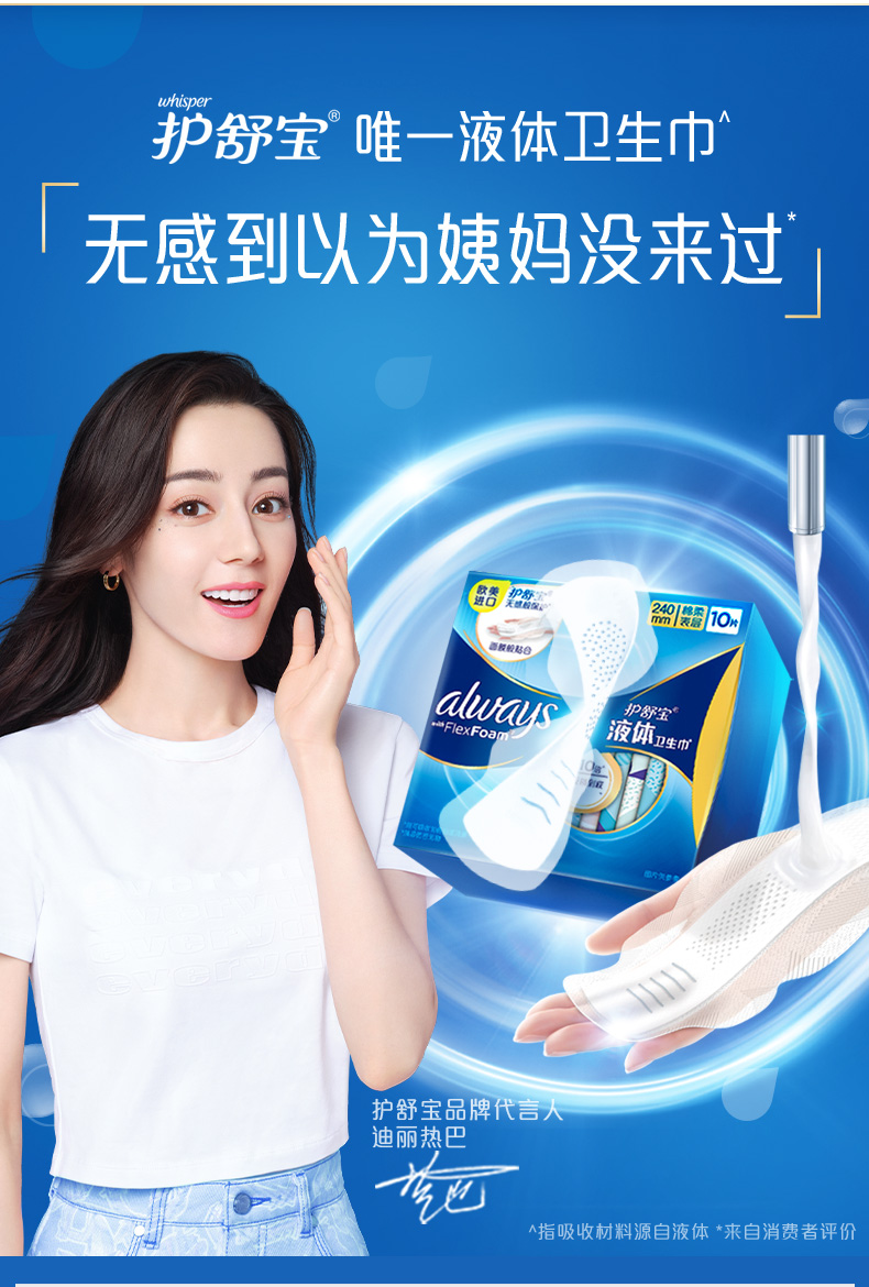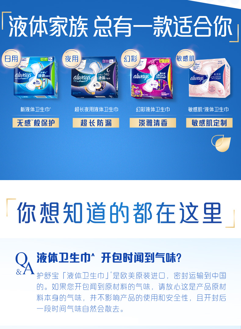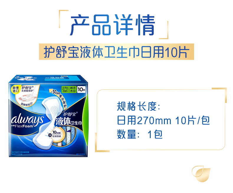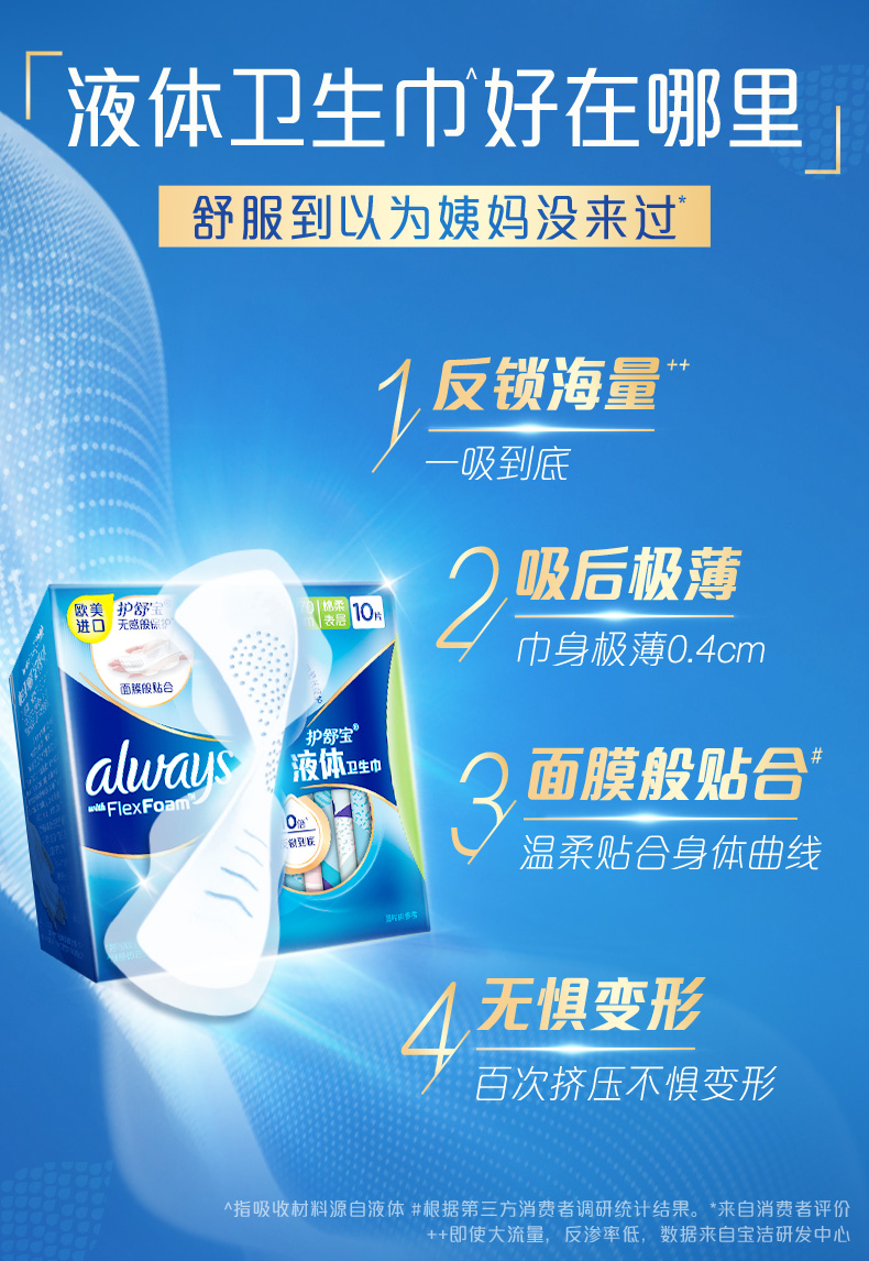 护舒宝进口液体卫生巾量多日用夜用270mm 10片姨妈巾用了以为姨妈没来过