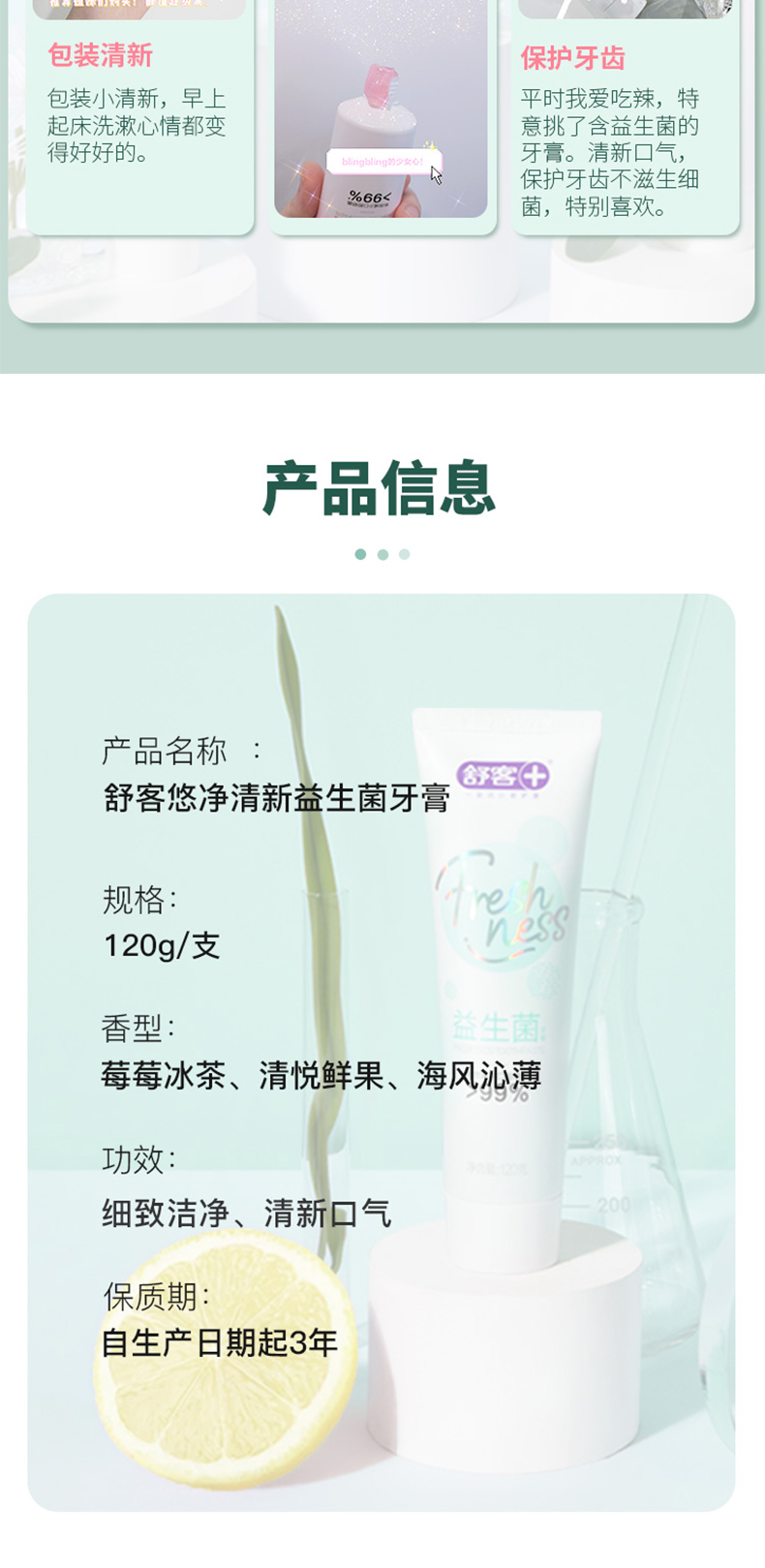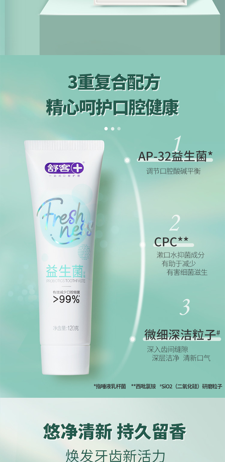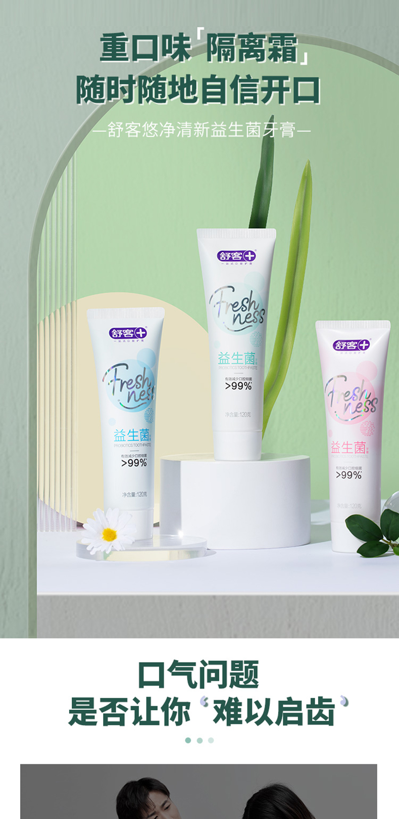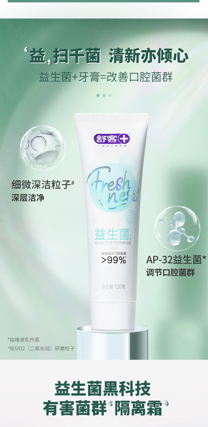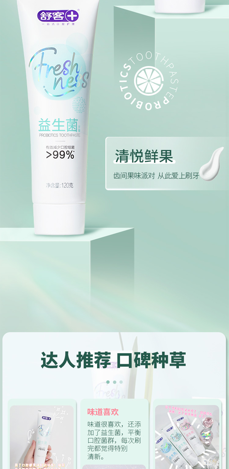 舒客 益生菌牙膏120g*2 清新口气 去除口腔异味