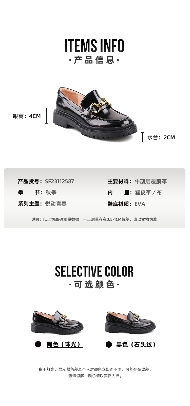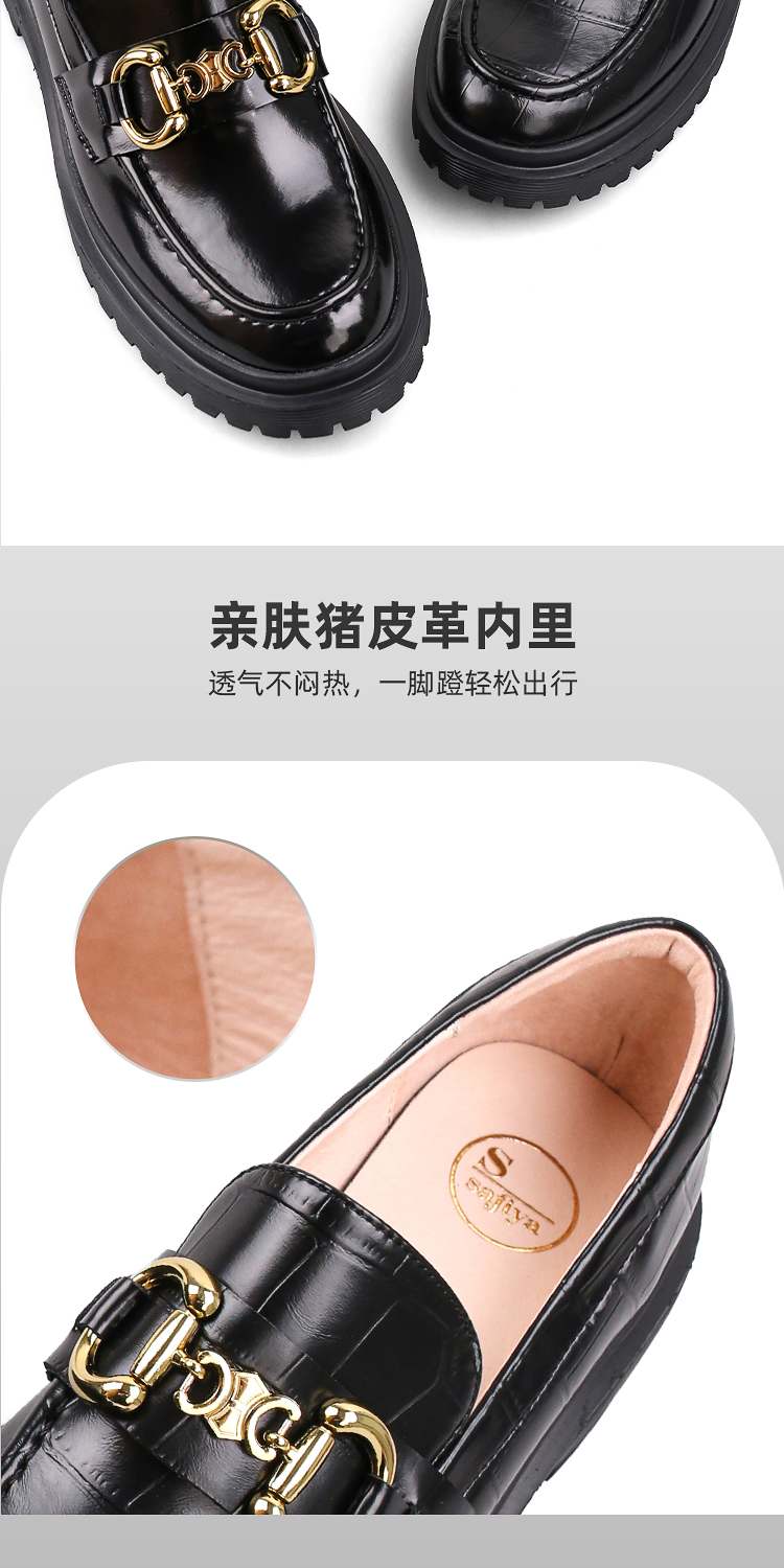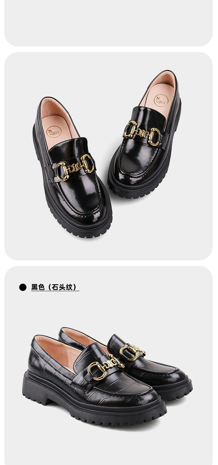 Safiya/索菲娅 四季单鞋2022年秋季新款英伦风马衔扣一脚蹬乐福鞋 SF23112587