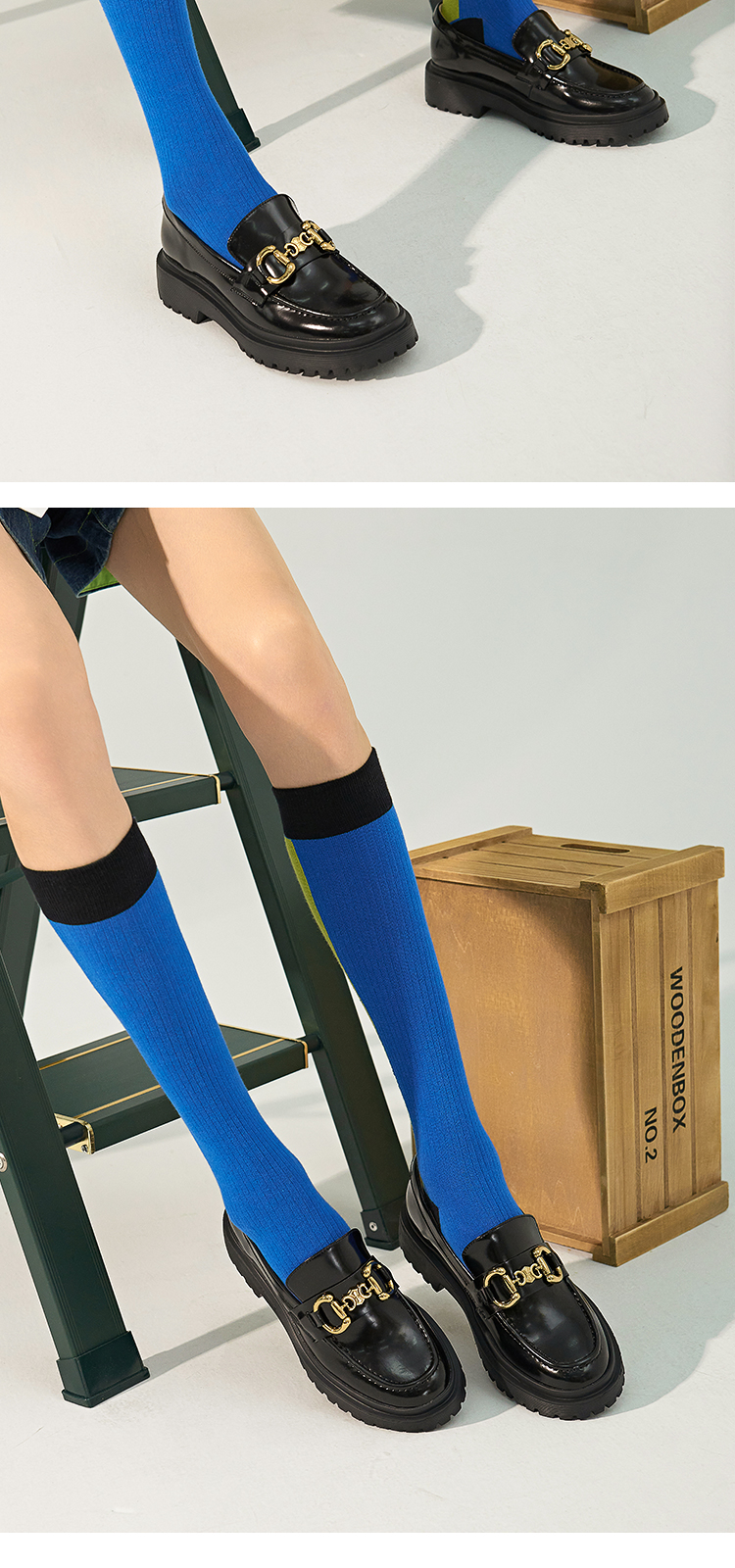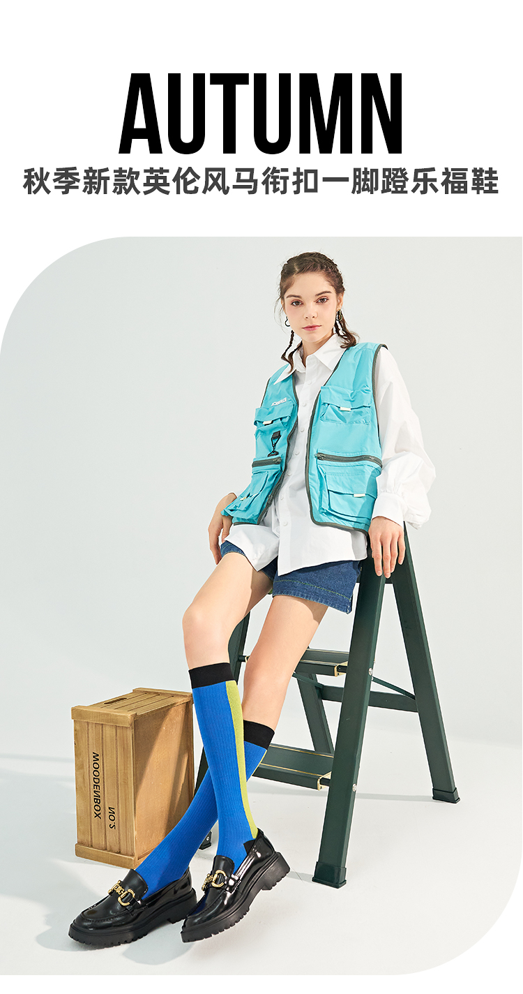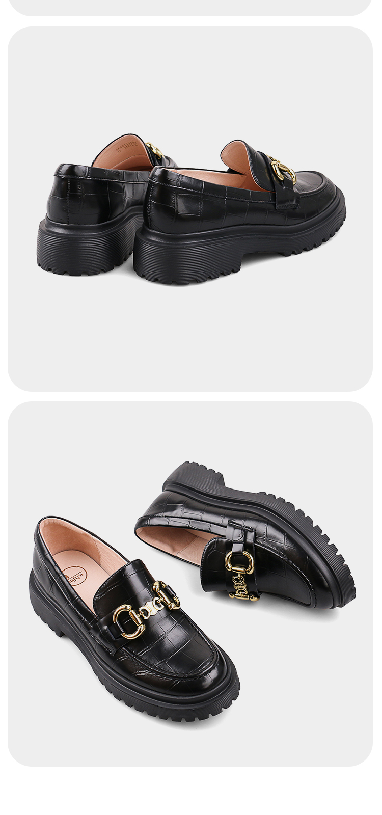 Safiya/索菲娅 四季单鞋2022年秋季新款英伦风马衔扣一脚蹬乐福鞋 SF23112587