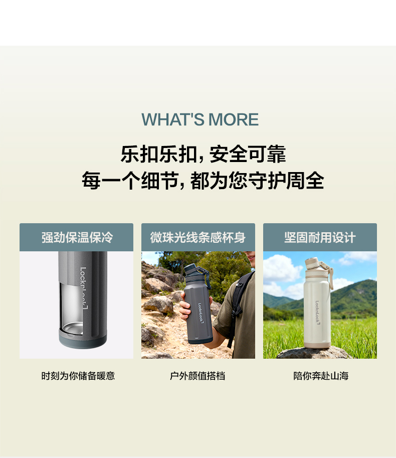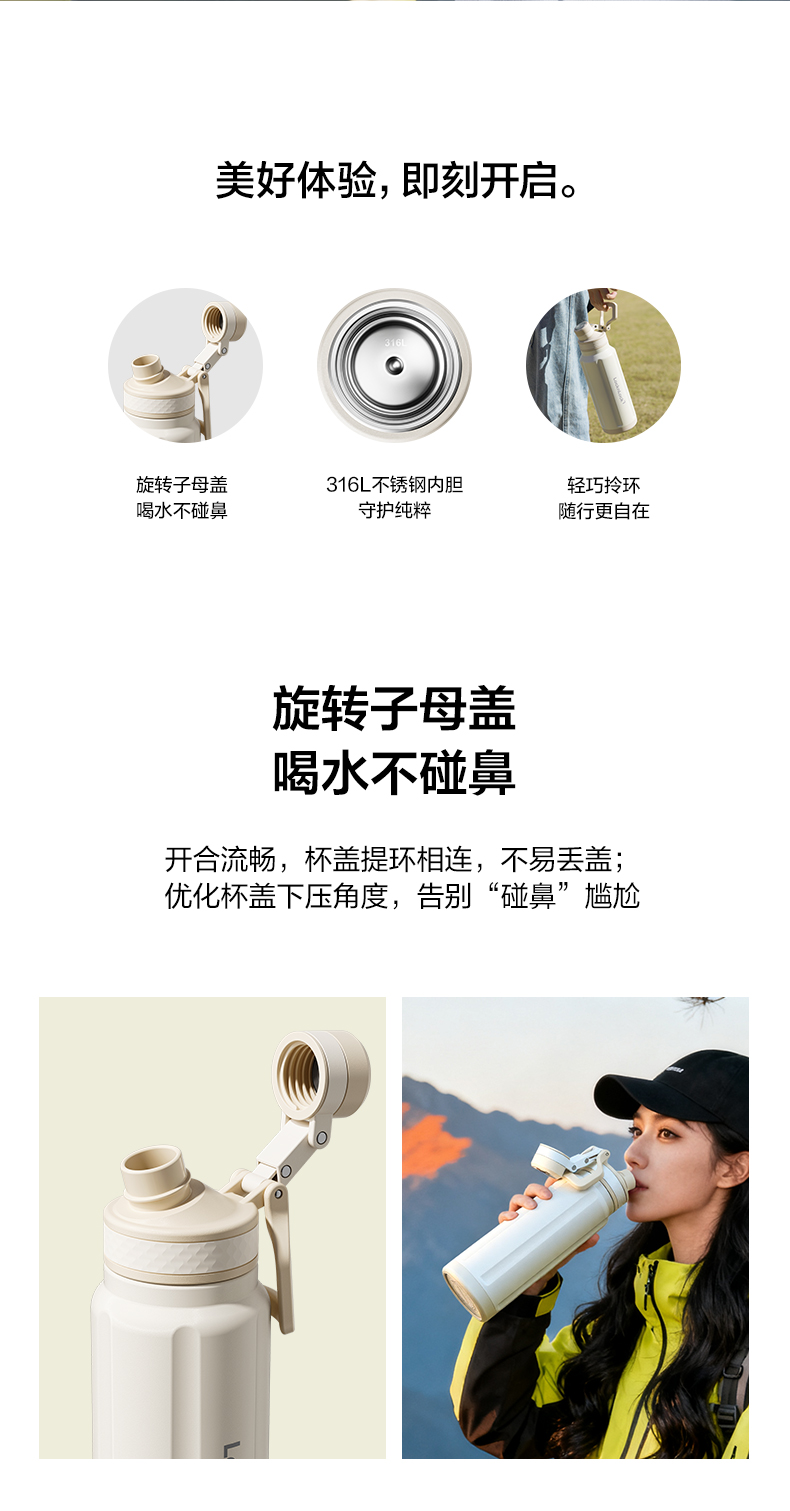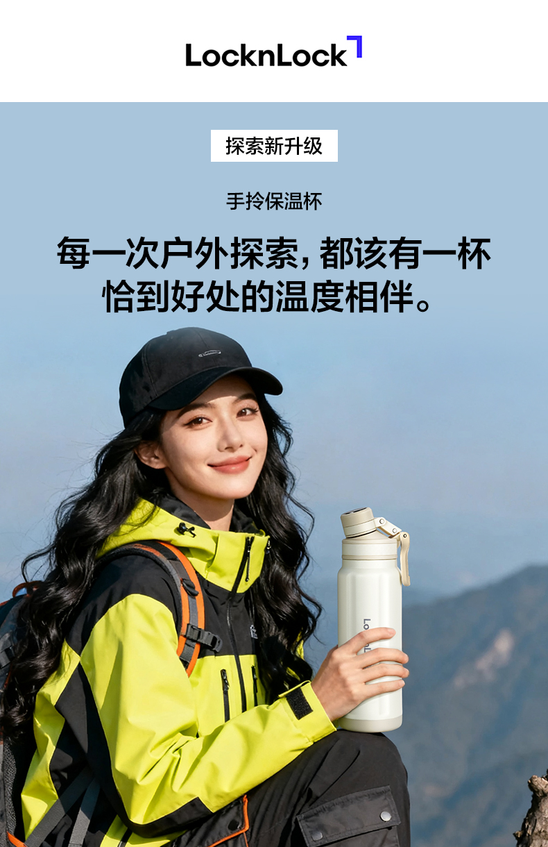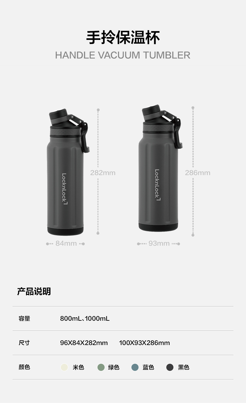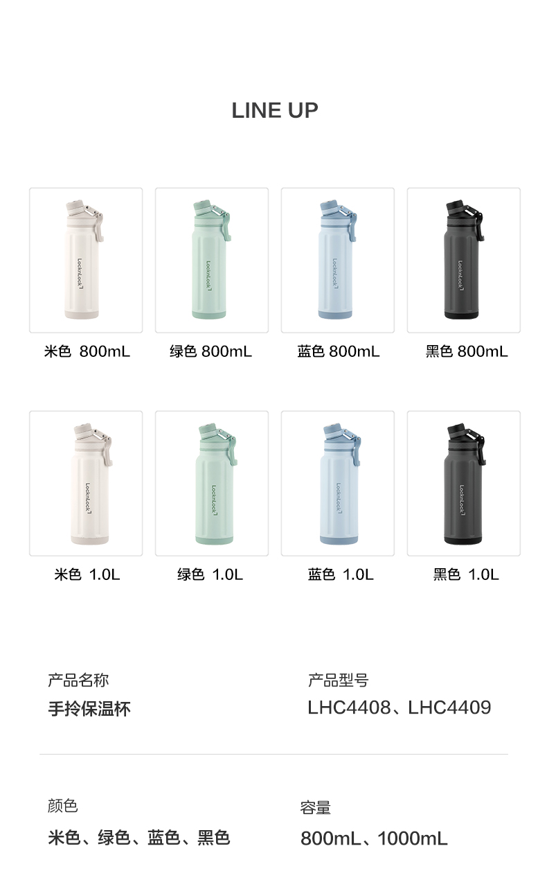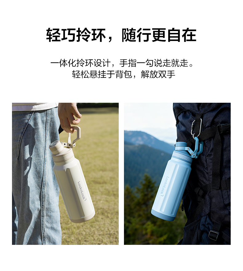 乐扣乐扣 提环保温杯800ml/1000ml 316不锈钢内胆 旋转子母盖 喝水不碰鼻 48小时发货