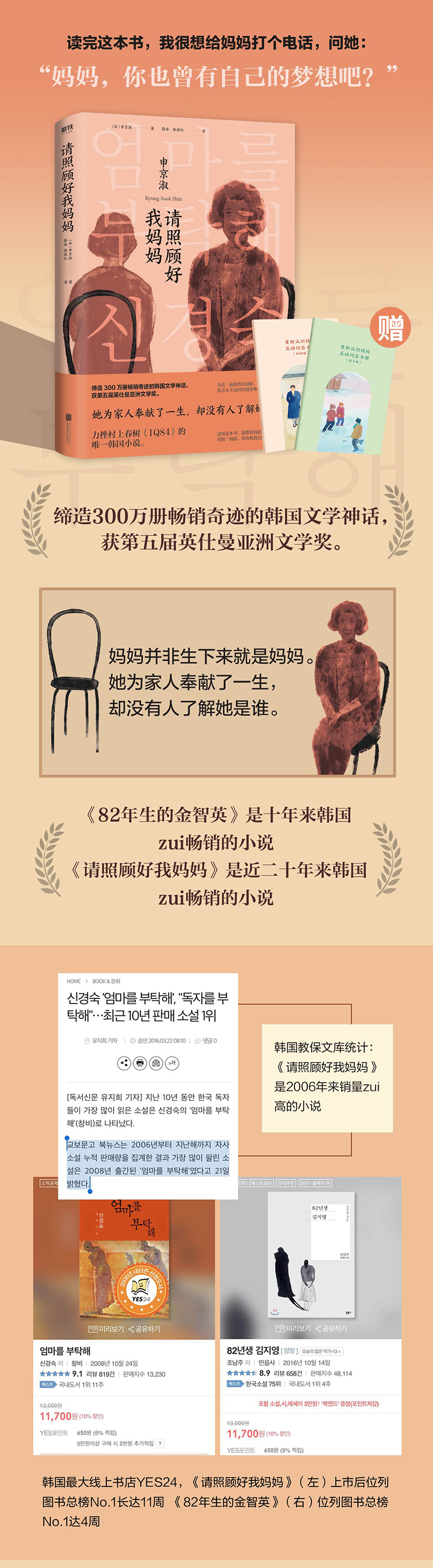 《82年生的金智英》是十年来韩国畅销的小说 《请照顾好我妈妈》是近二十年来韩国畅销的小说