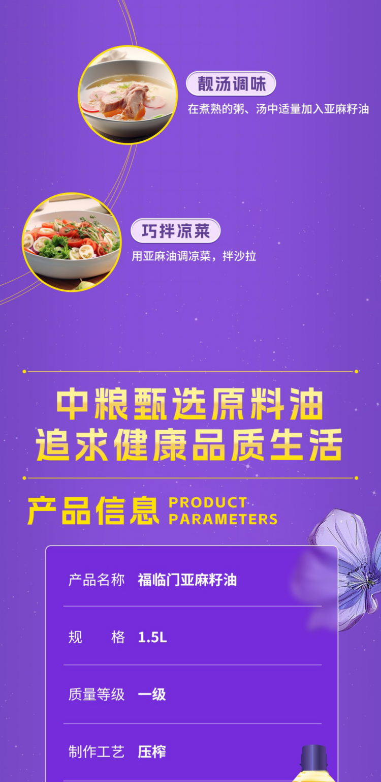 福临门福泰安康亚麻籽油 1.5L