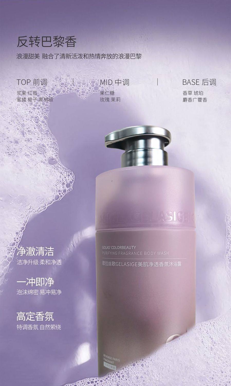 歌拉丝歌 美肌净透香氛沐浴露500ml(荔枝玫瑰/反转巴黎/黑丫丫香)