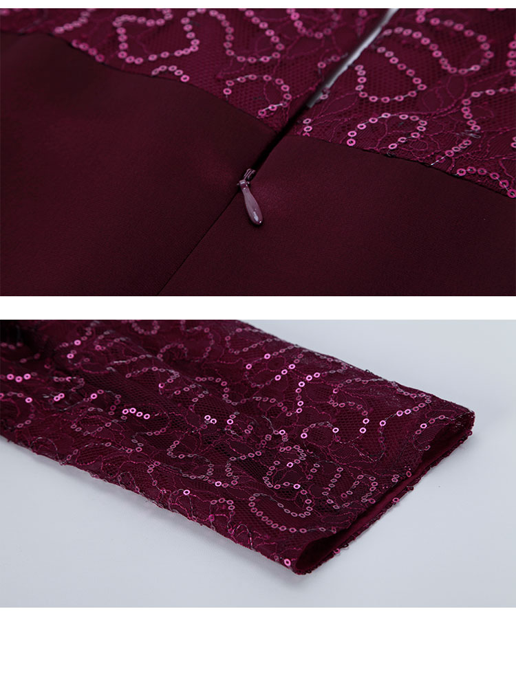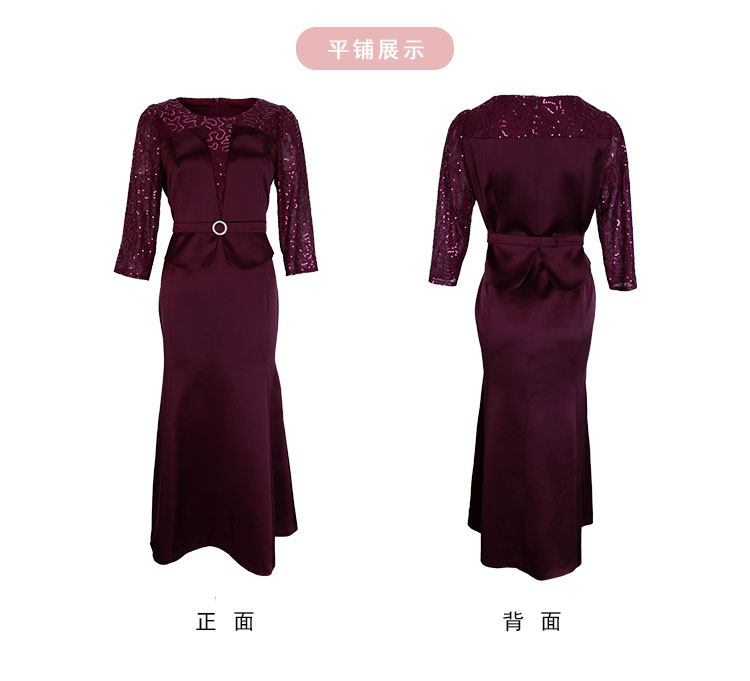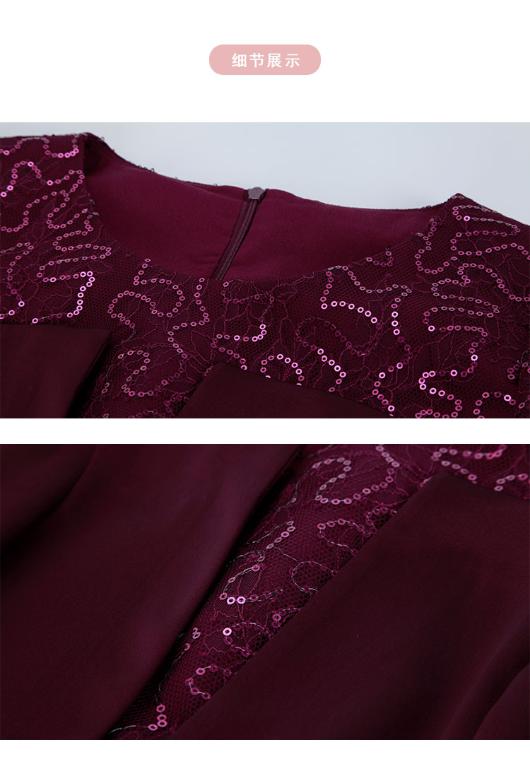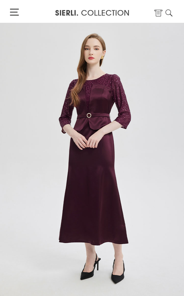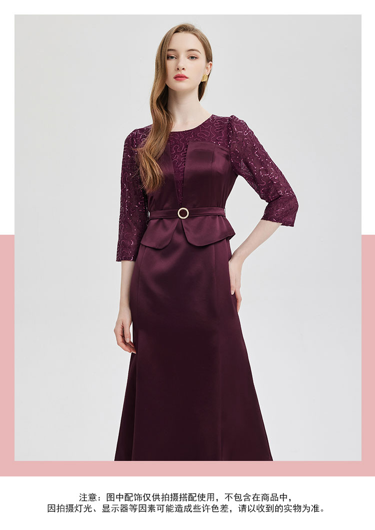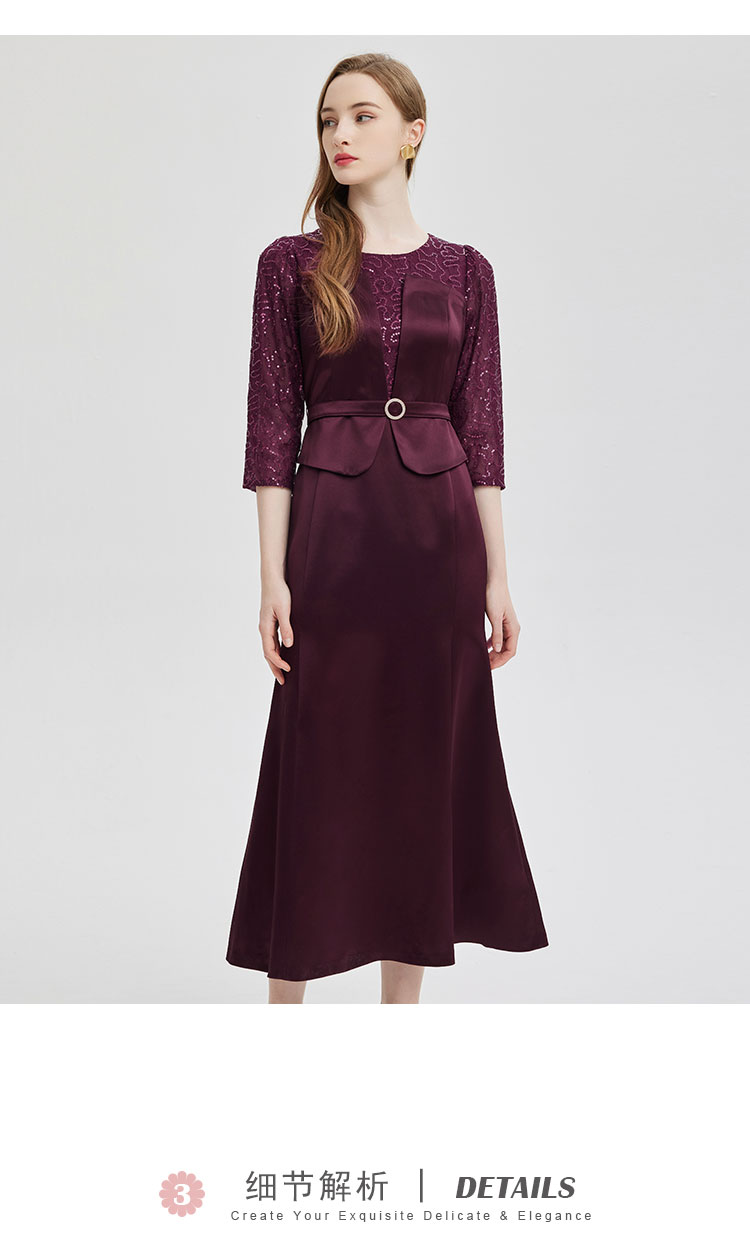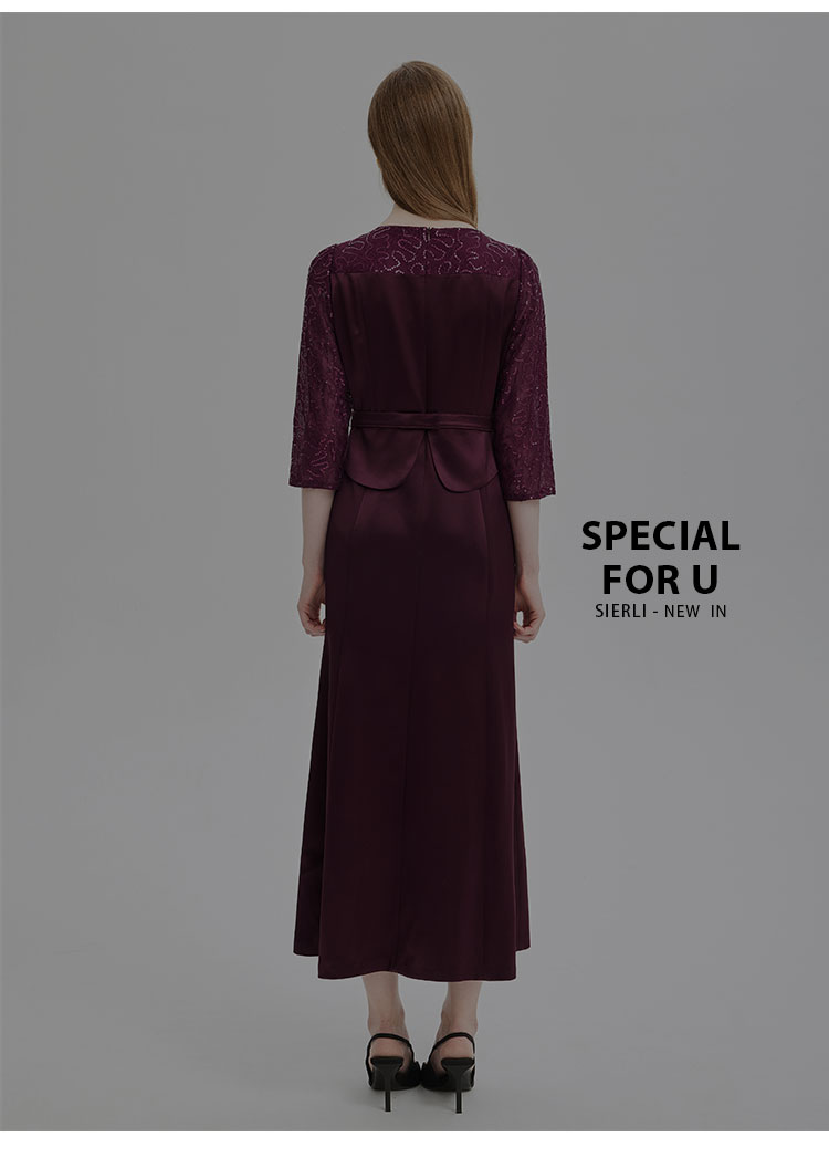 PE818斯尔丽24新款法式浪漫拼接蕾丝假两件式七分袖奢华简约礼服连衣裙