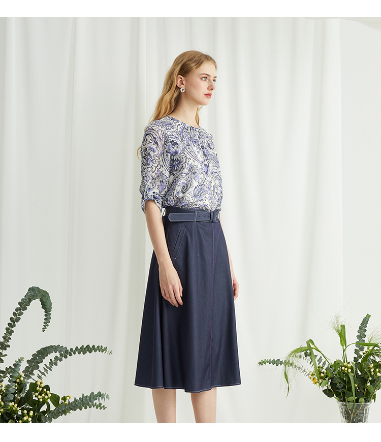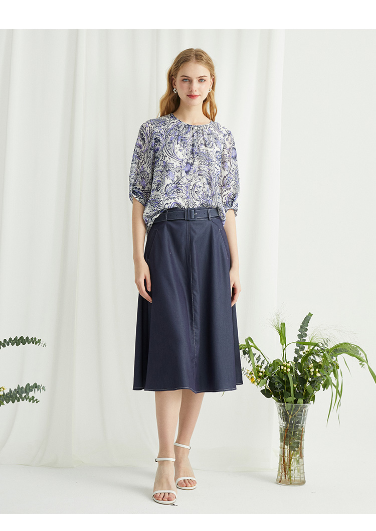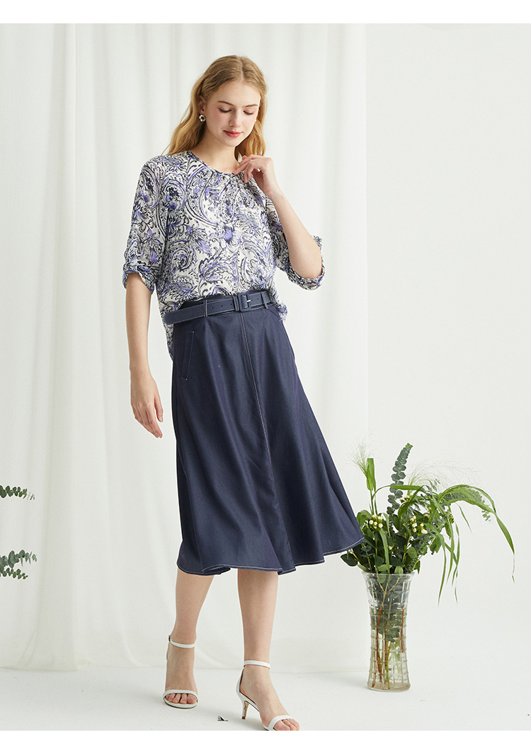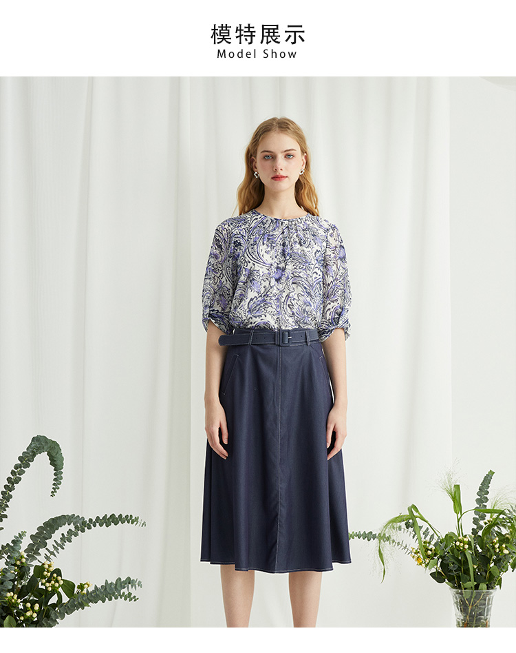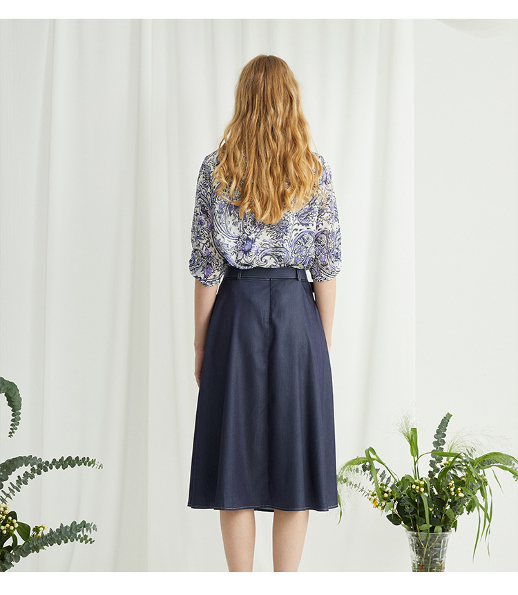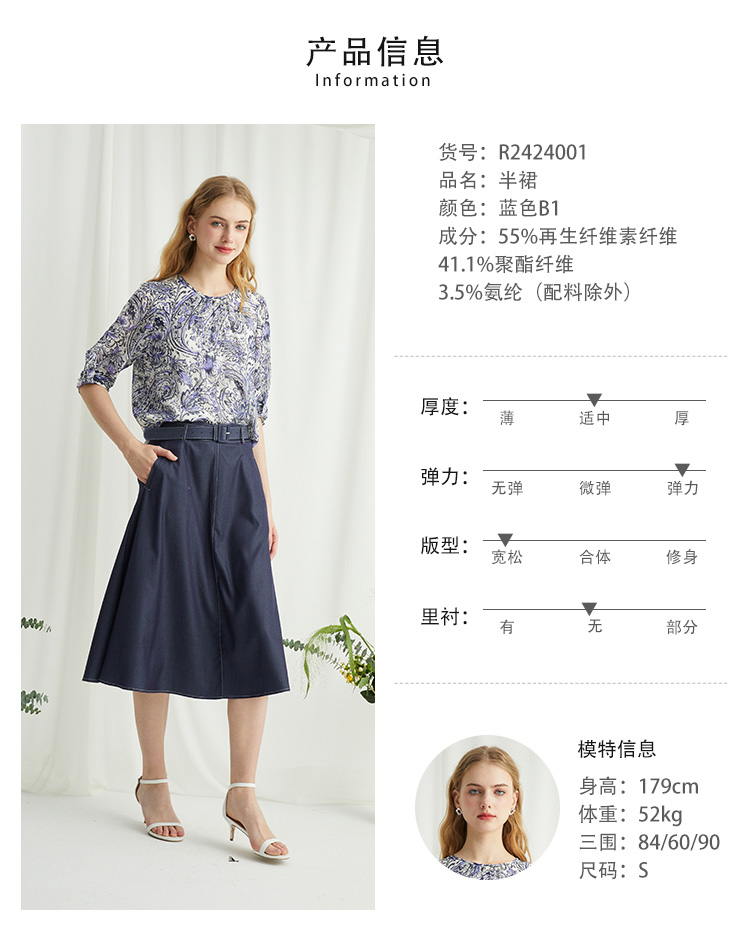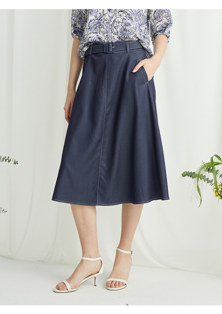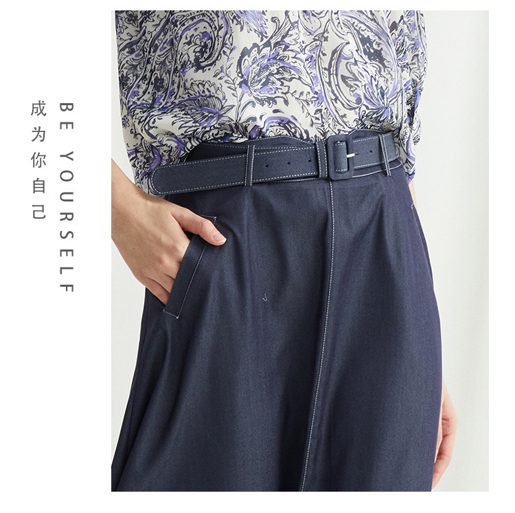 VIVIAN LIU薇薇安刘R2424001春女装新款腰部腰带斜插兜伞摆半裙