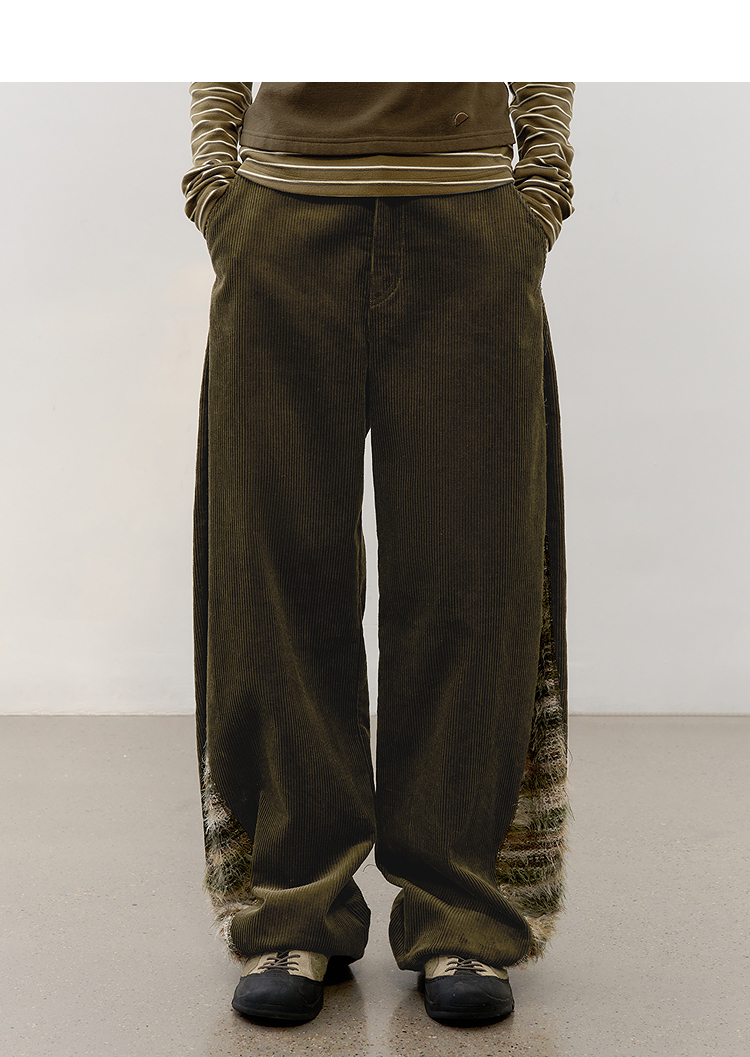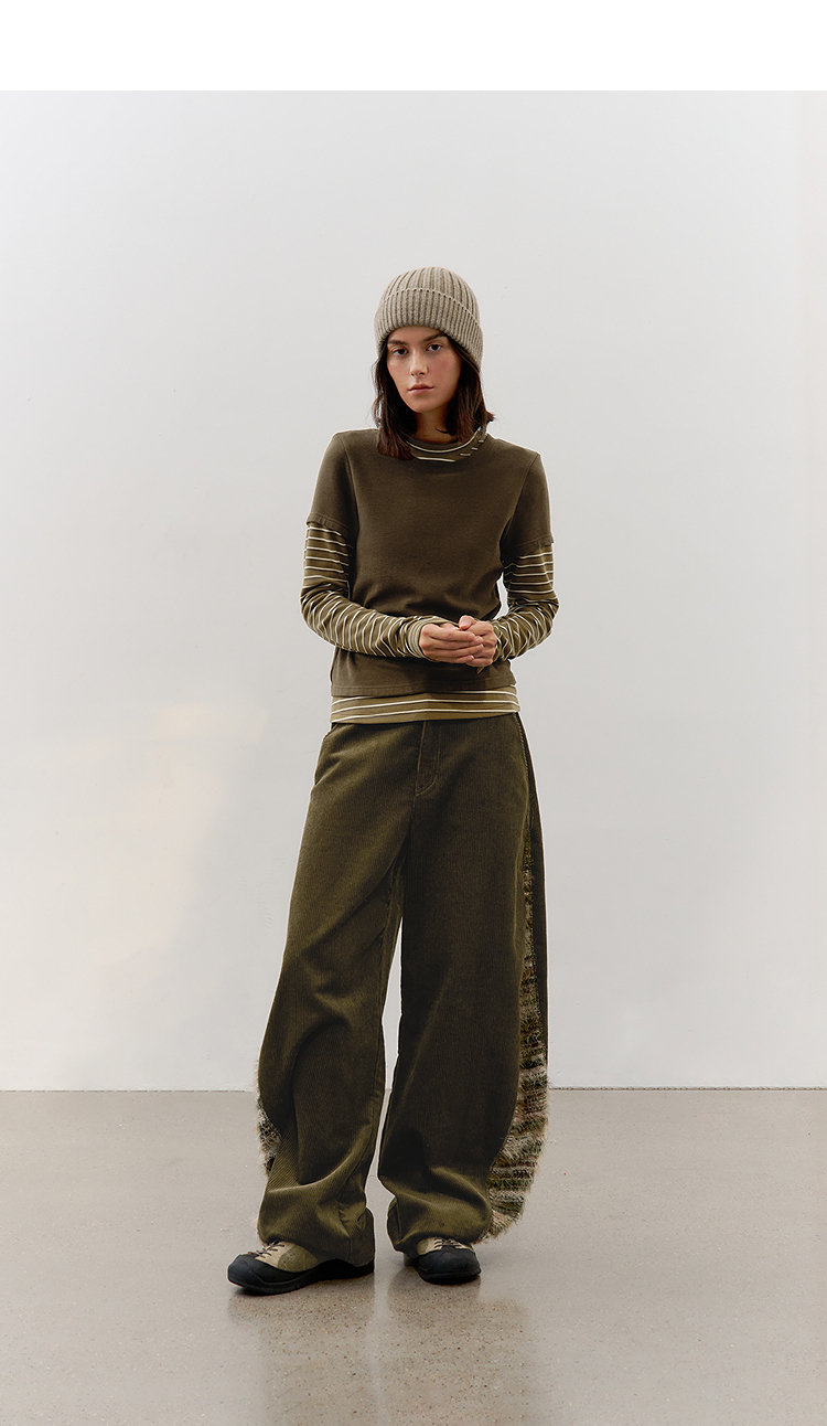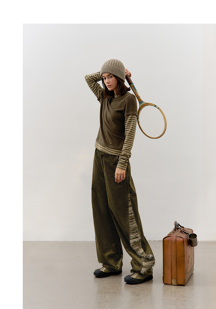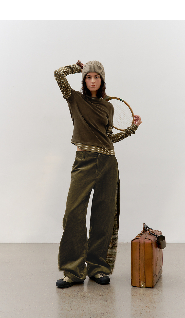 半圆/D57131199/灯芯绒侧面拼接亲肤柔软休闲长裤