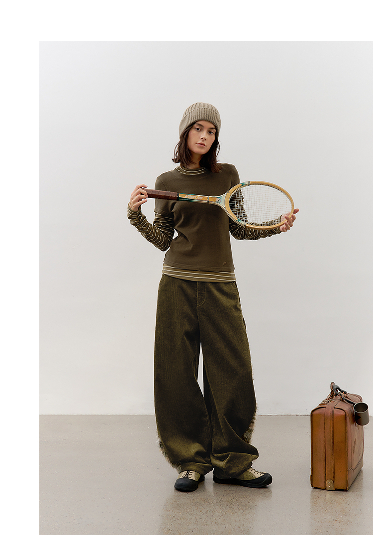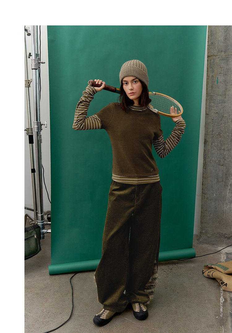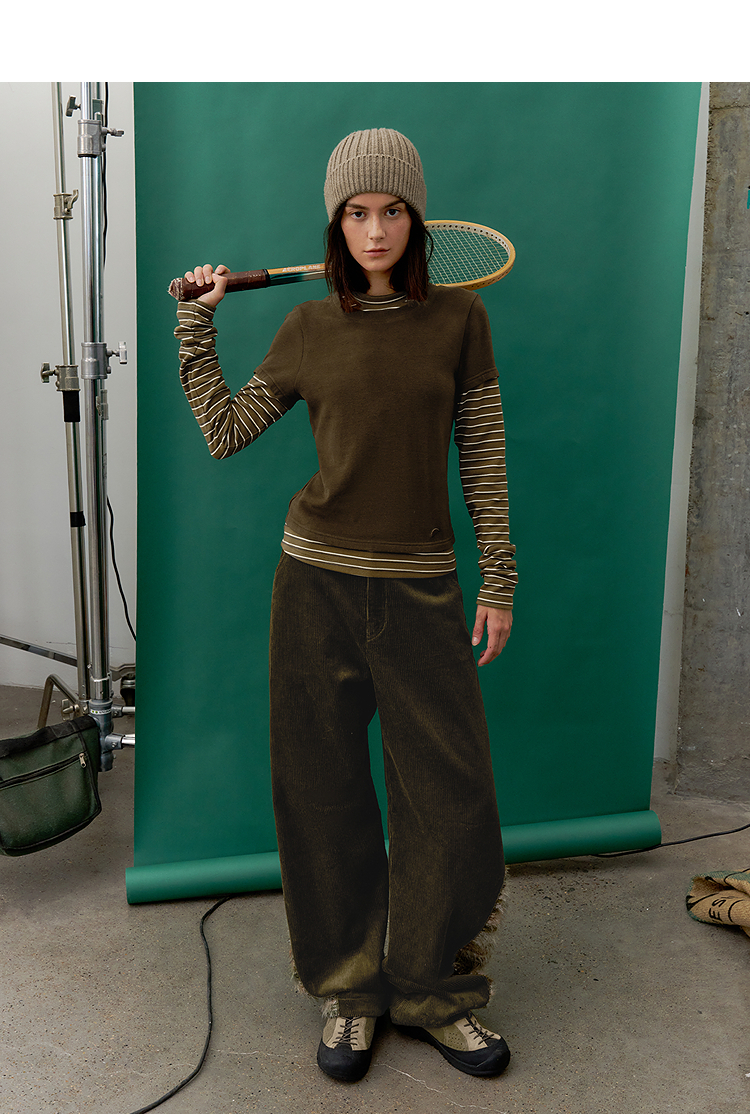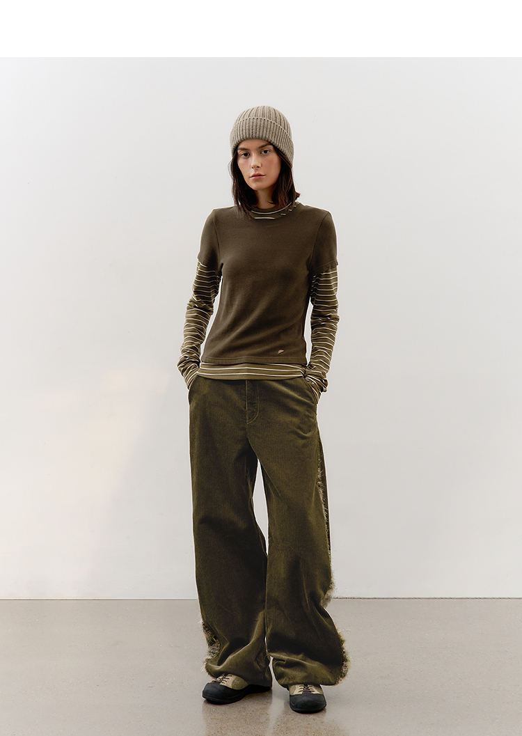 半圆/D57131199/灯芯绒侧面拼接亲肤柔软休闲长裤