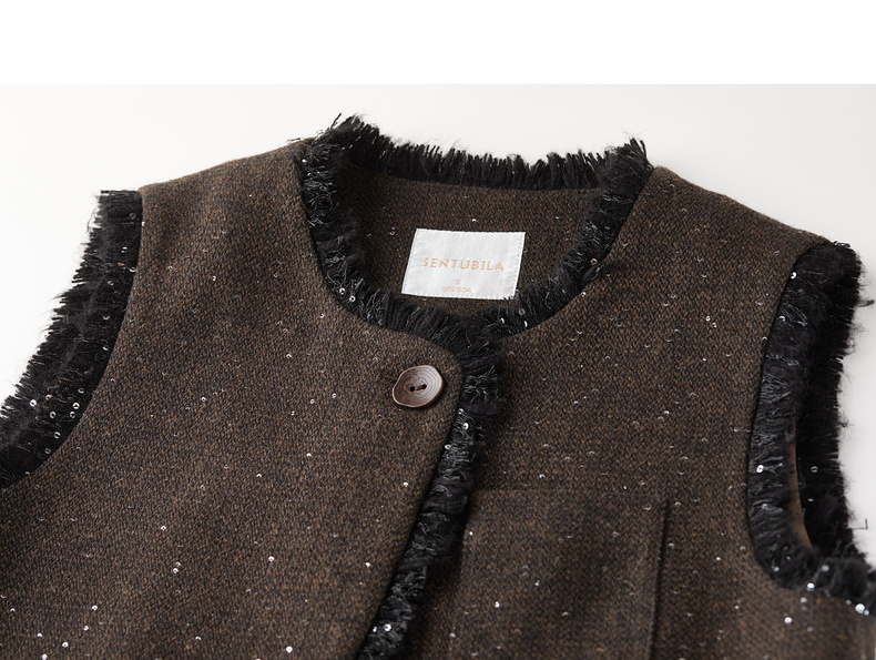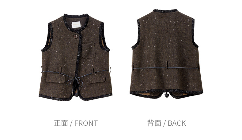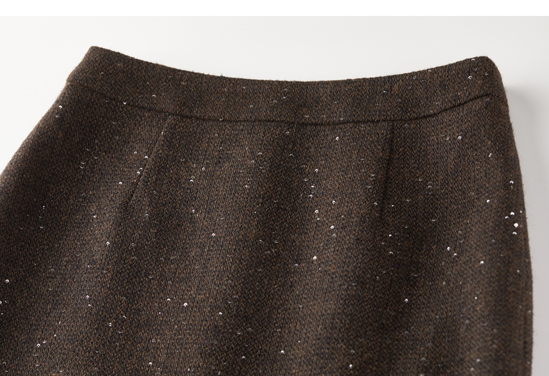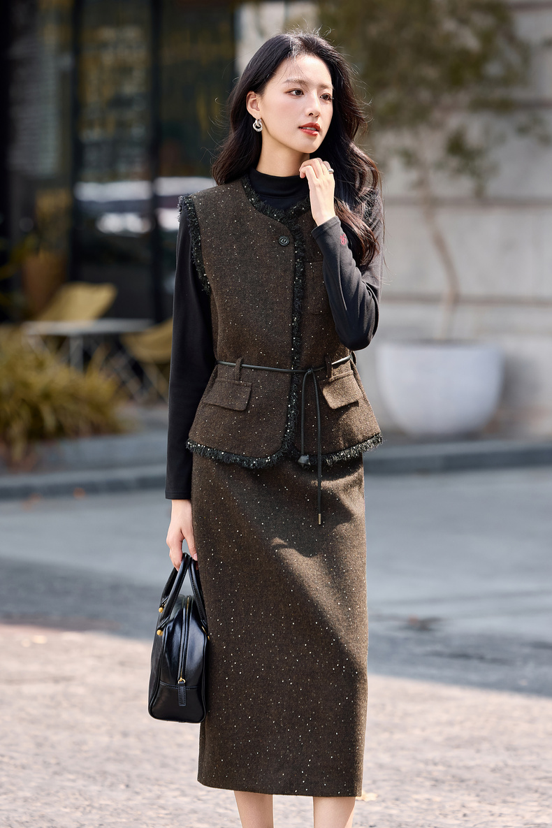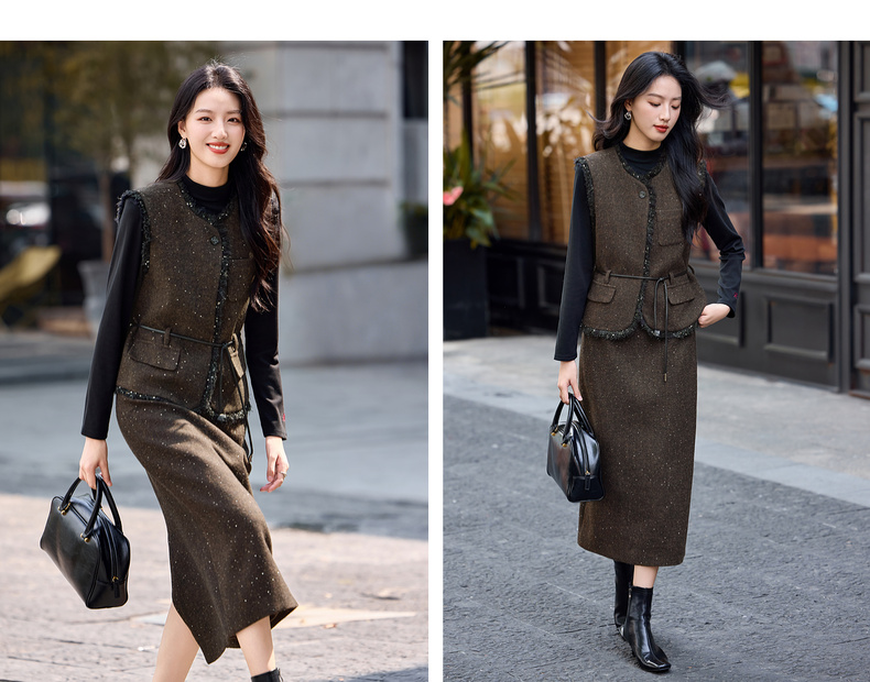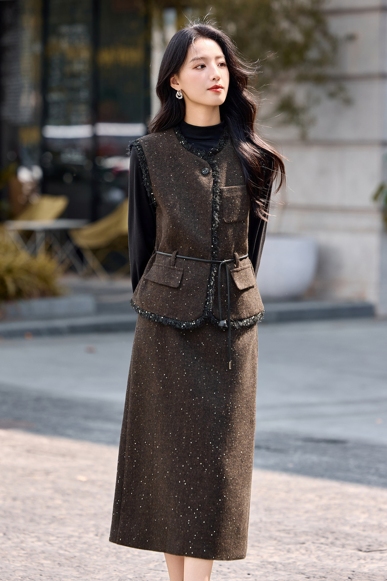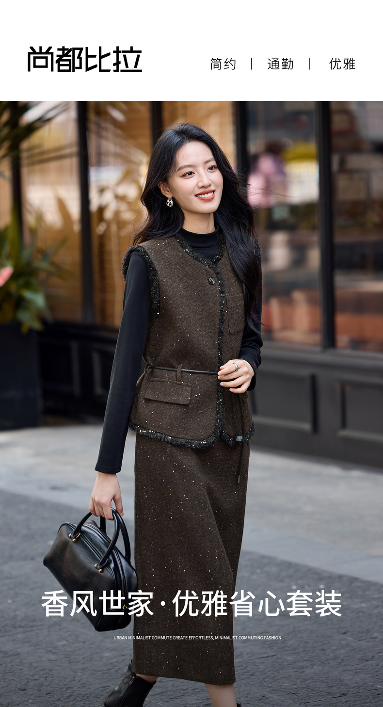 【内购】【免搭配套装】小香风亮片厚保暖可拆腰带马夹&高腰开叉A字半裙-154ZC4888