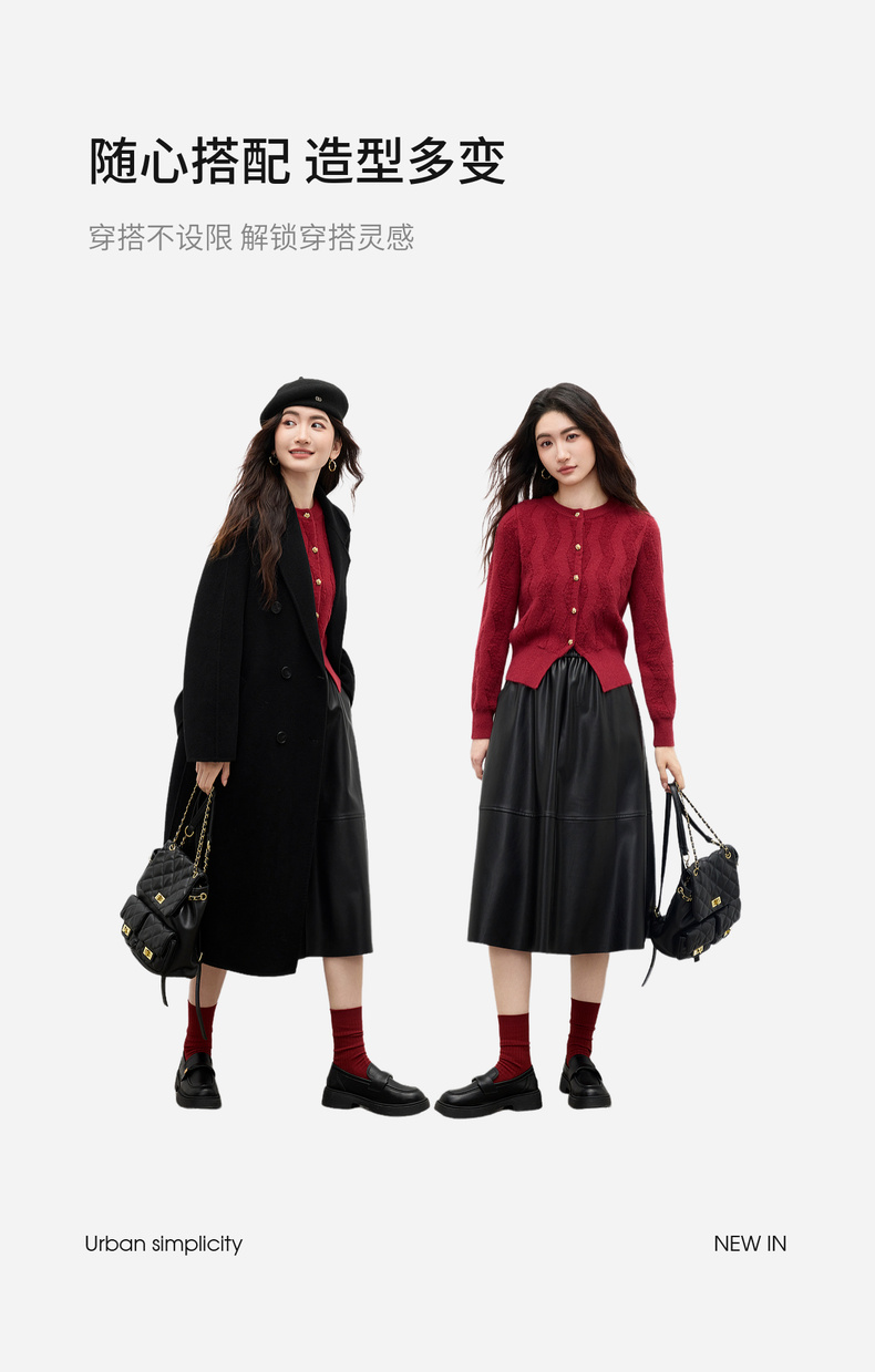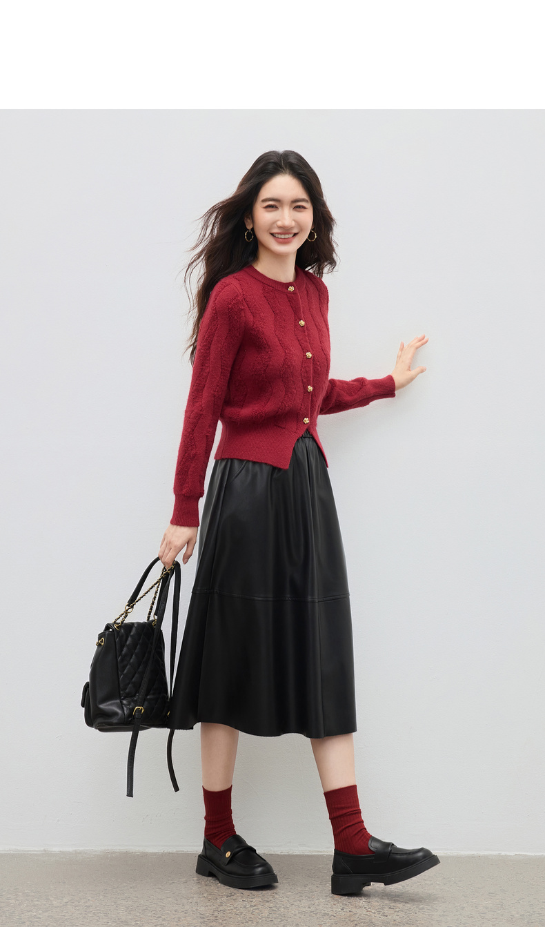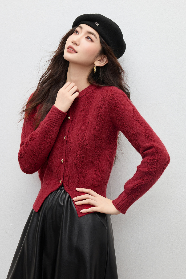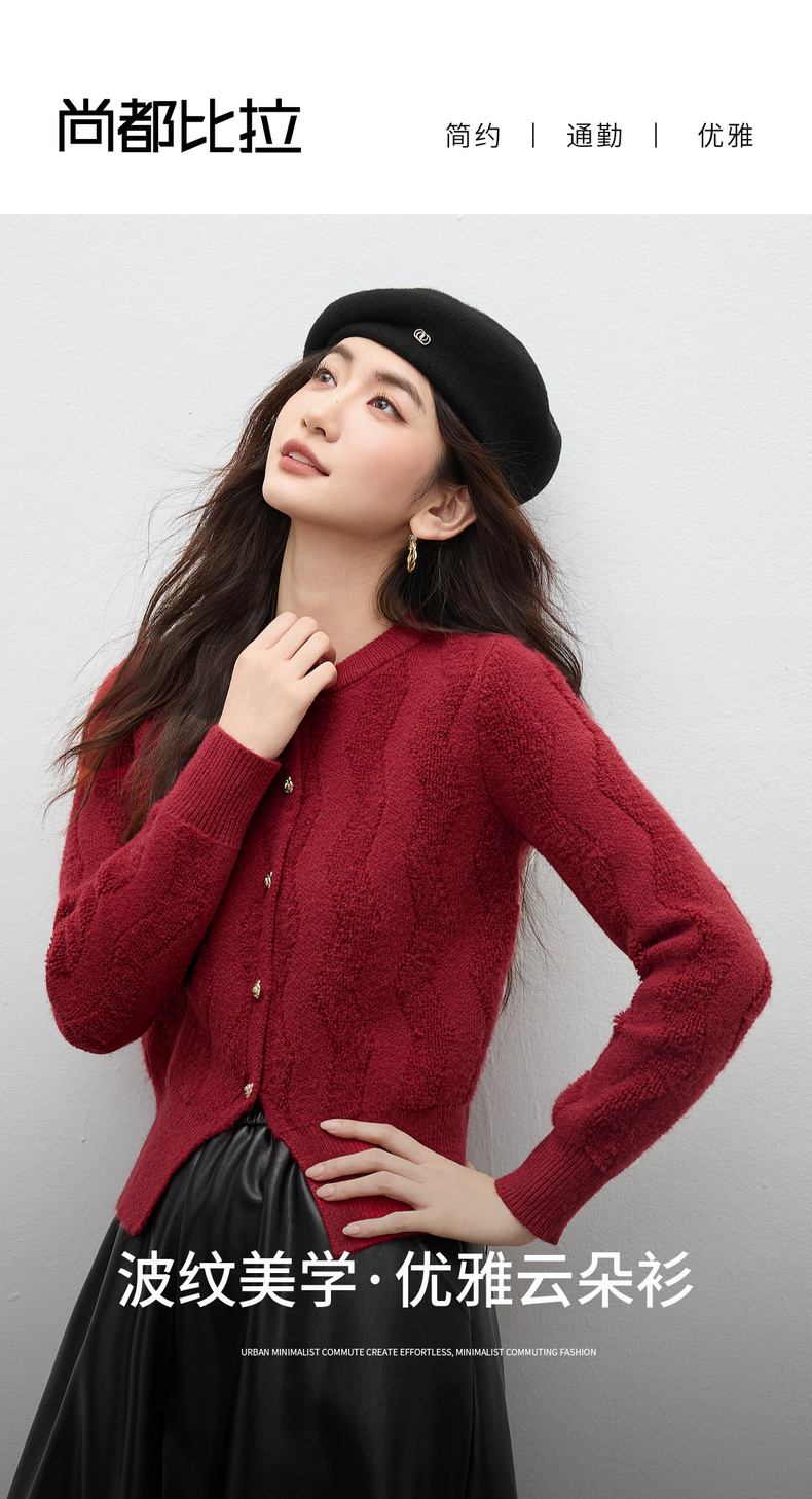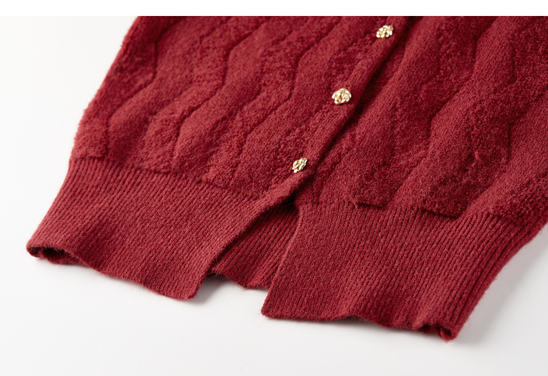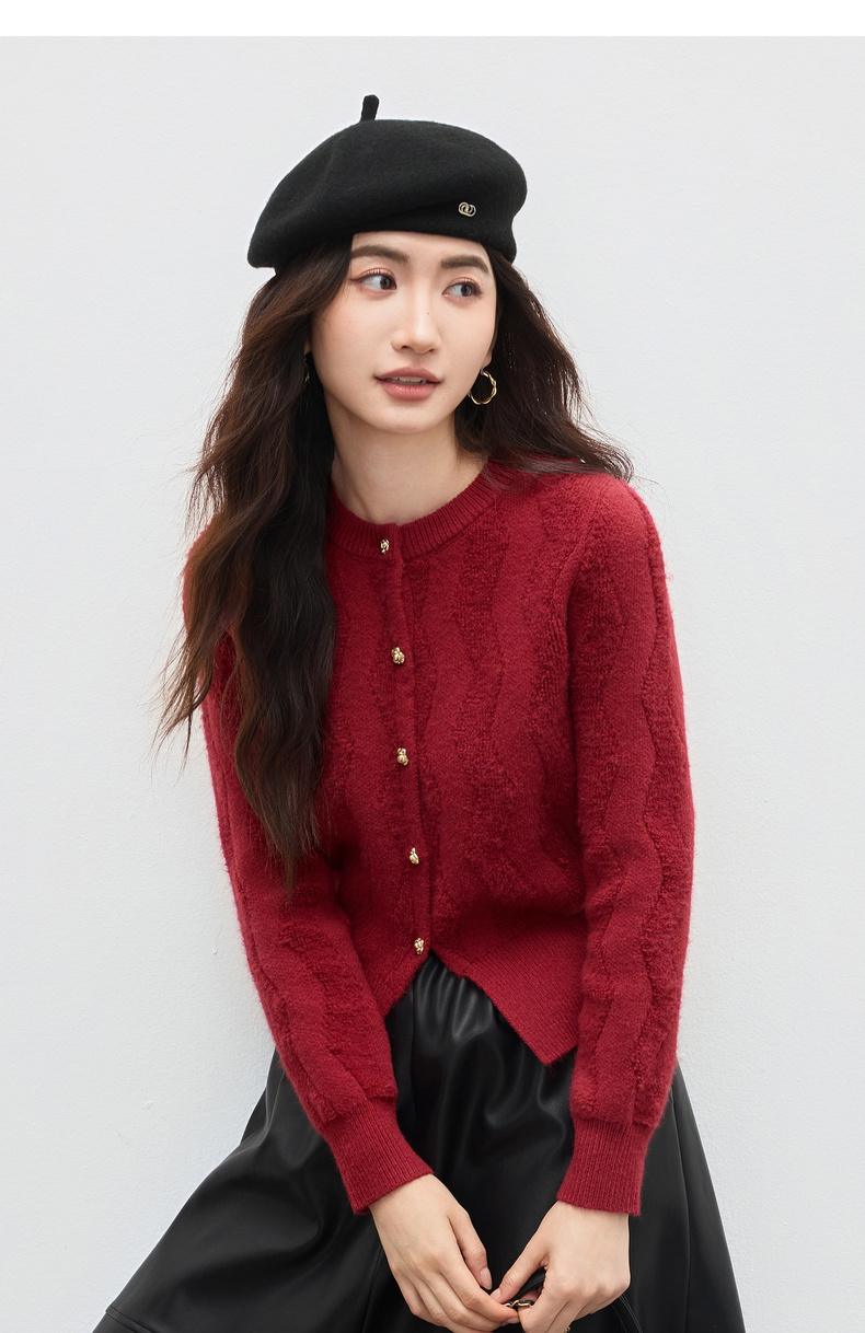 【内购】【波纹美学】优雅通勤氛围感圆领玫瑰金属扣修身弹力厚开衫毛衣-W54EB4145