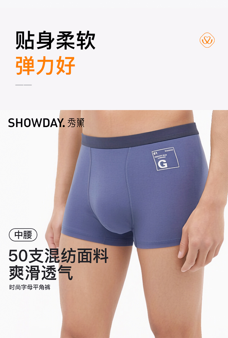 【满3条/6.7折】【秀黛】男时尚字母平角裤男士内裤【1条】S5330020T【门店同款】【内裤非质量问题不退换】