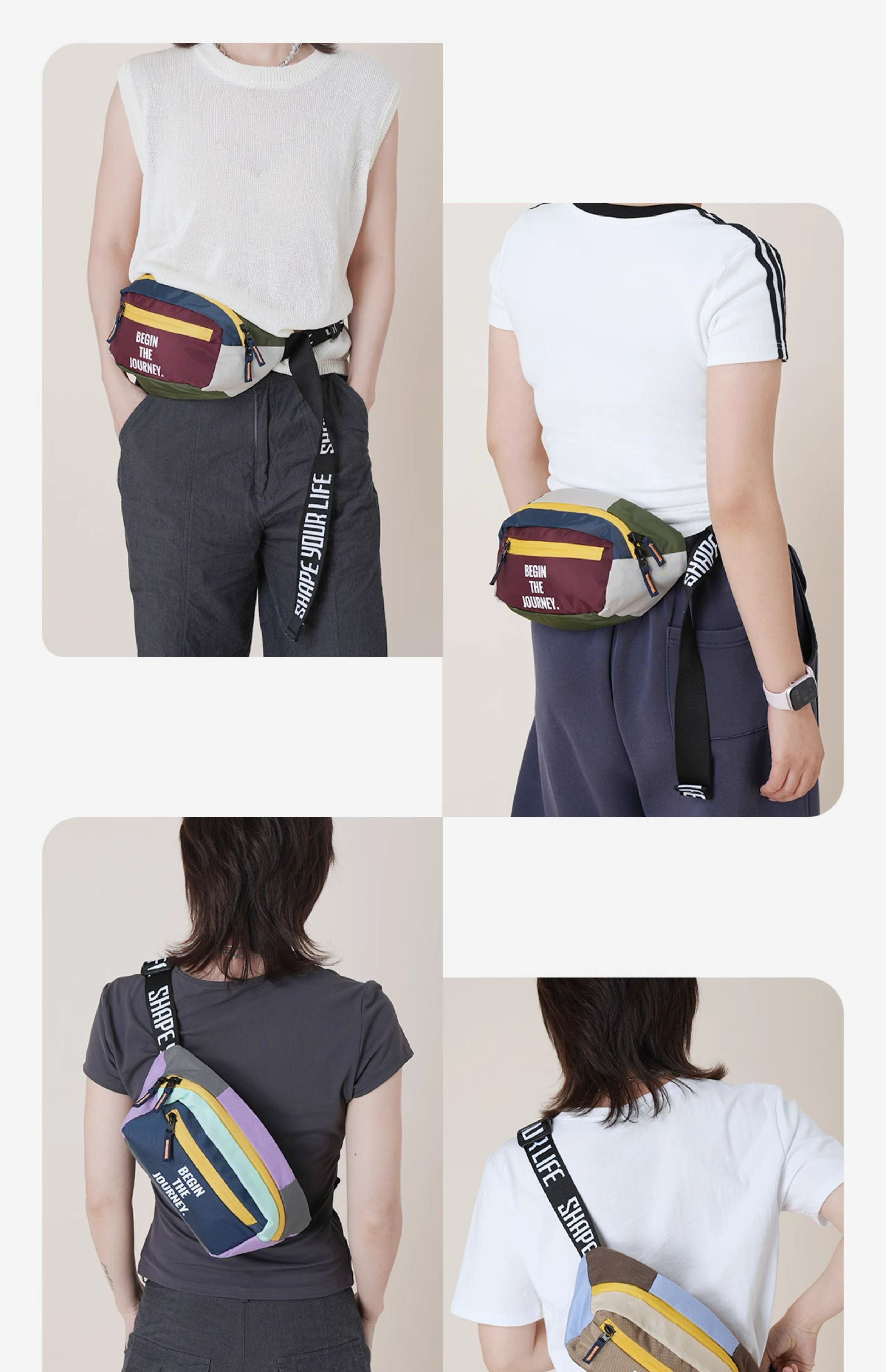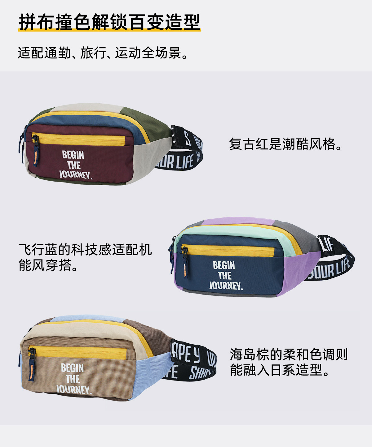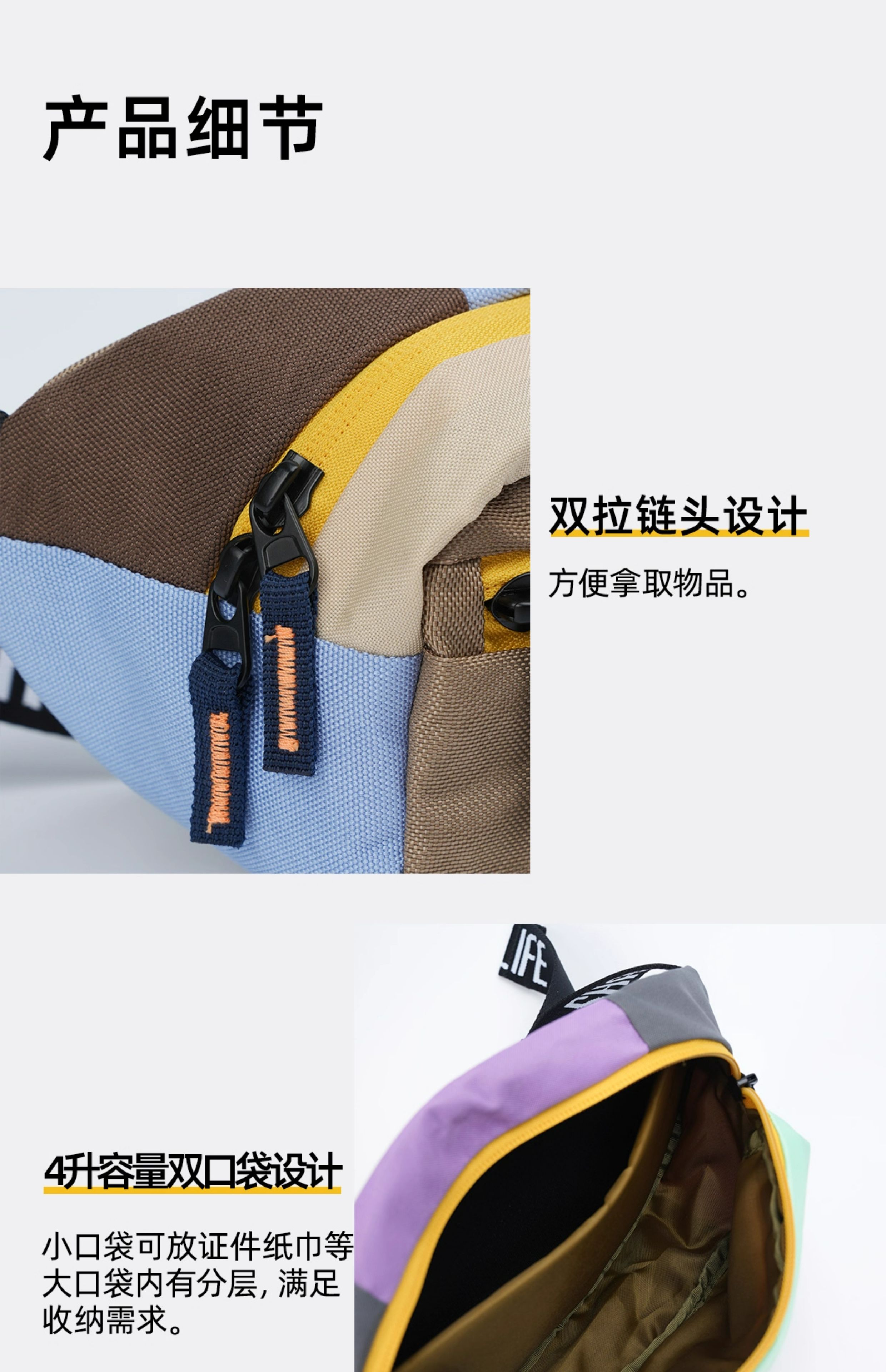 趁早即刻出发腰包撞色拼接斜挎小包轻便户外跑步运动防泼水胸包