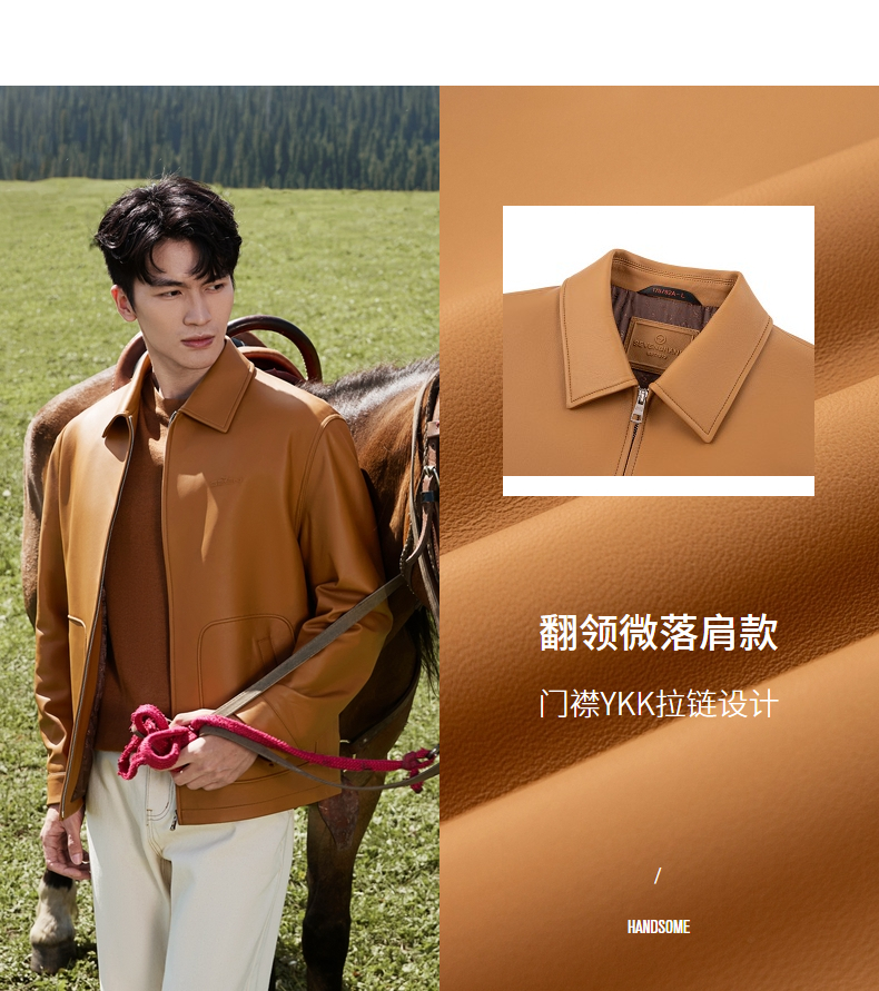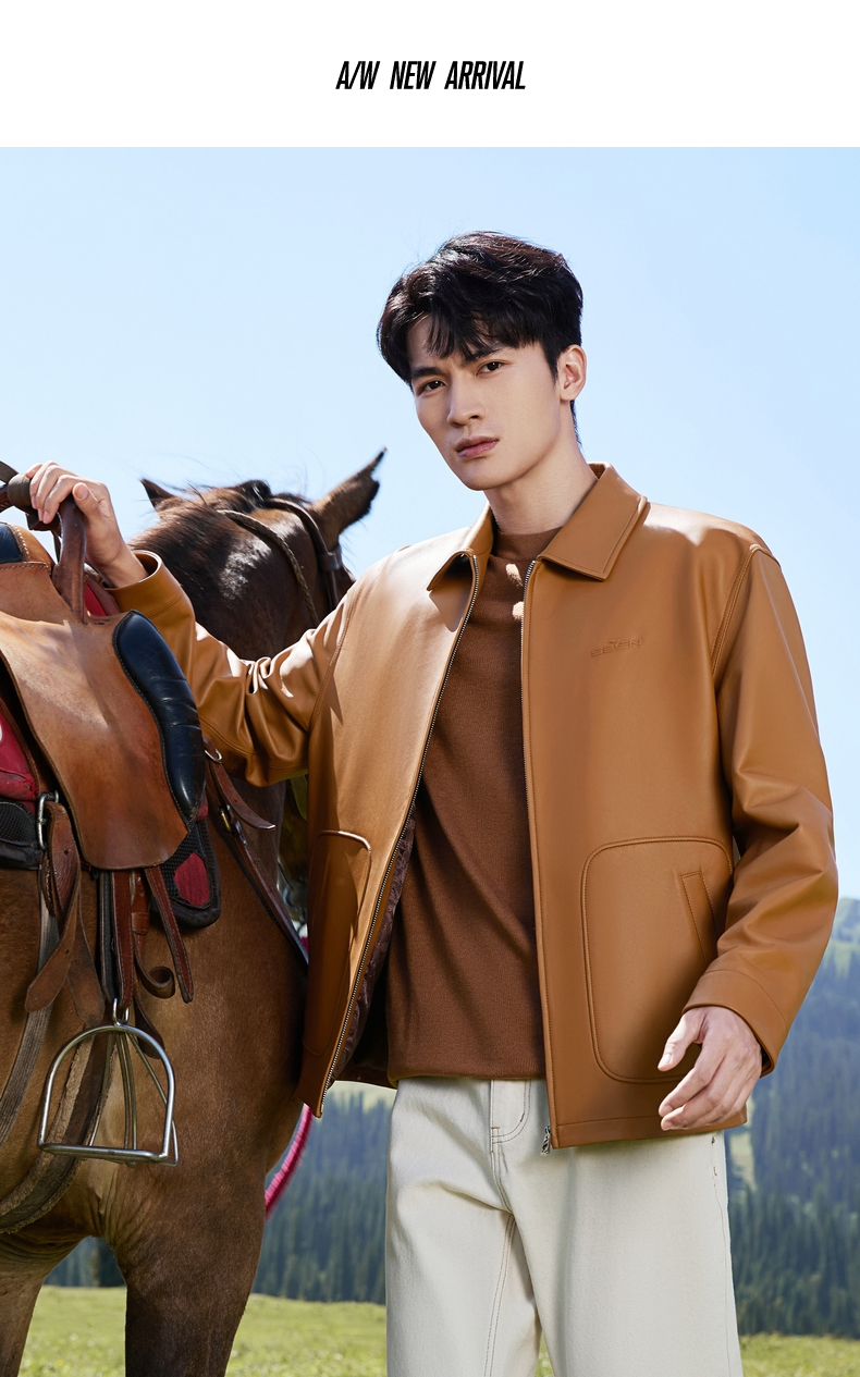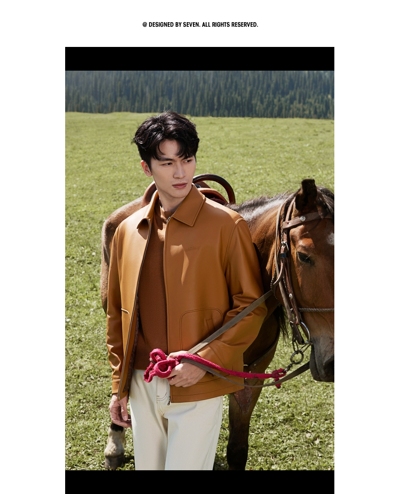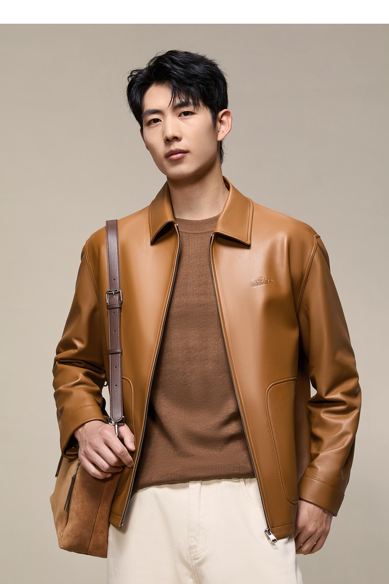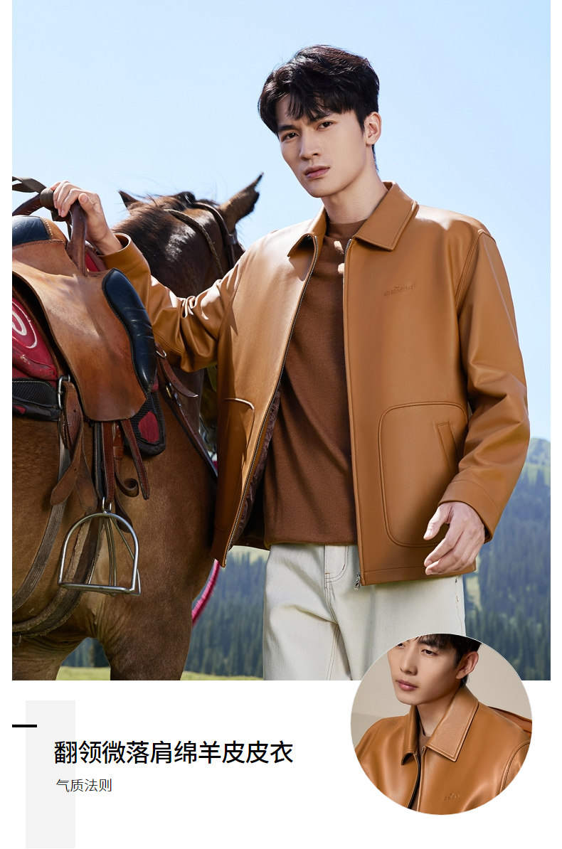【绵羊皮】柒牌男装潮流真皮皮衣2025秋季新品翻领皮夹克休闲外套129J70480