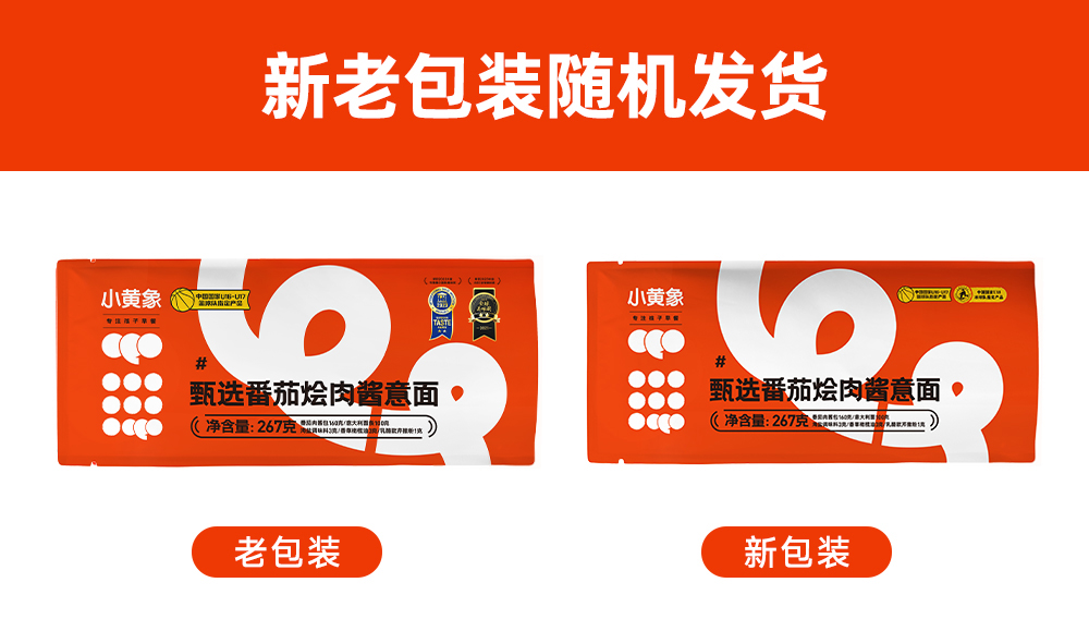 1【代发】【72小时发货】小黄象甄选番茄烩肉酱意面 267g/袋意大利面速食