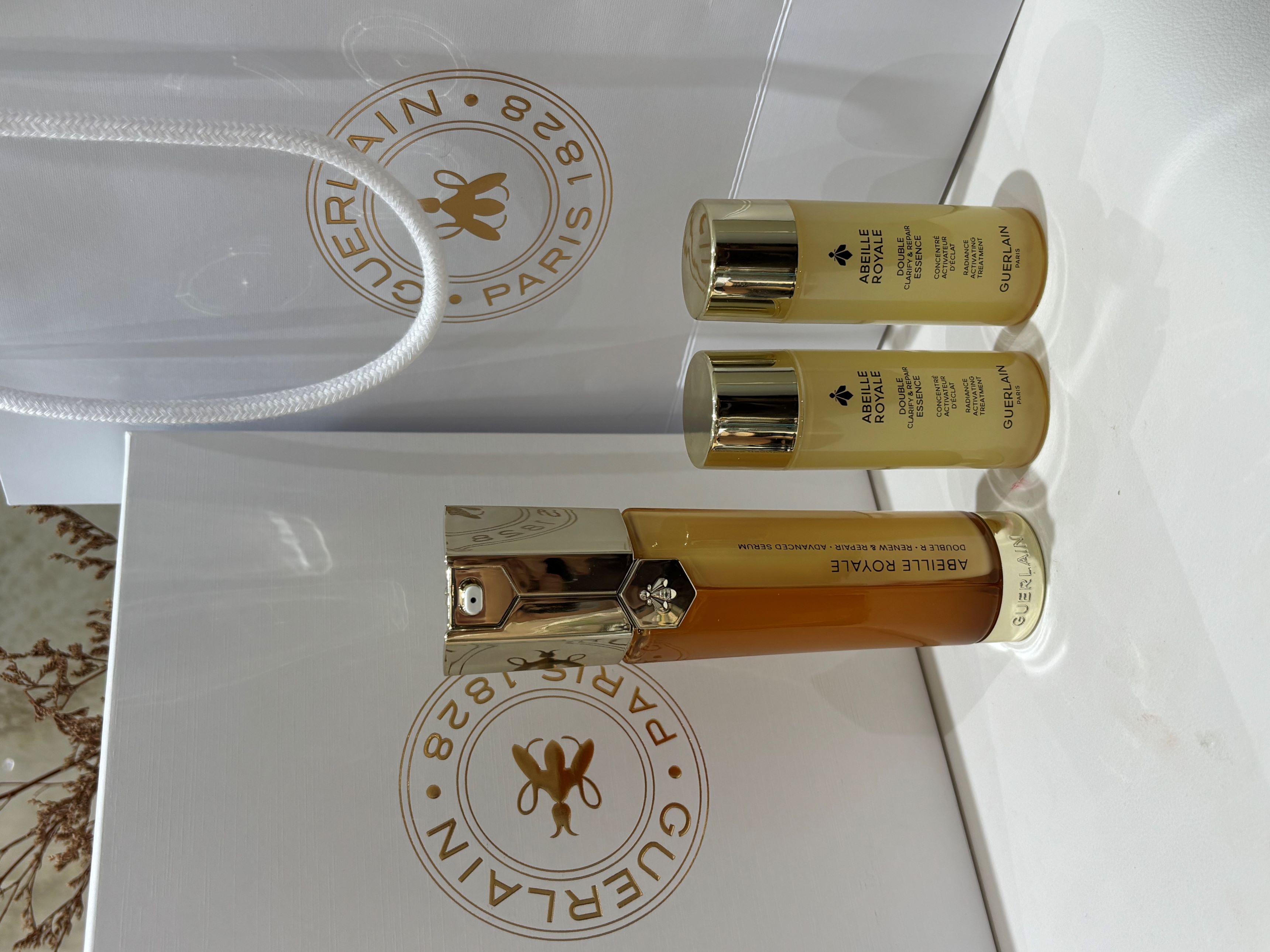 心选丨【香港直邮】【含礼盒礼袋】Guerlain/娇兰双管蜂姿精华50ml+娇兰帝皇蜂姿净澈亮白双效修护精华水40ml*2 顺丰发货 合并订单不发