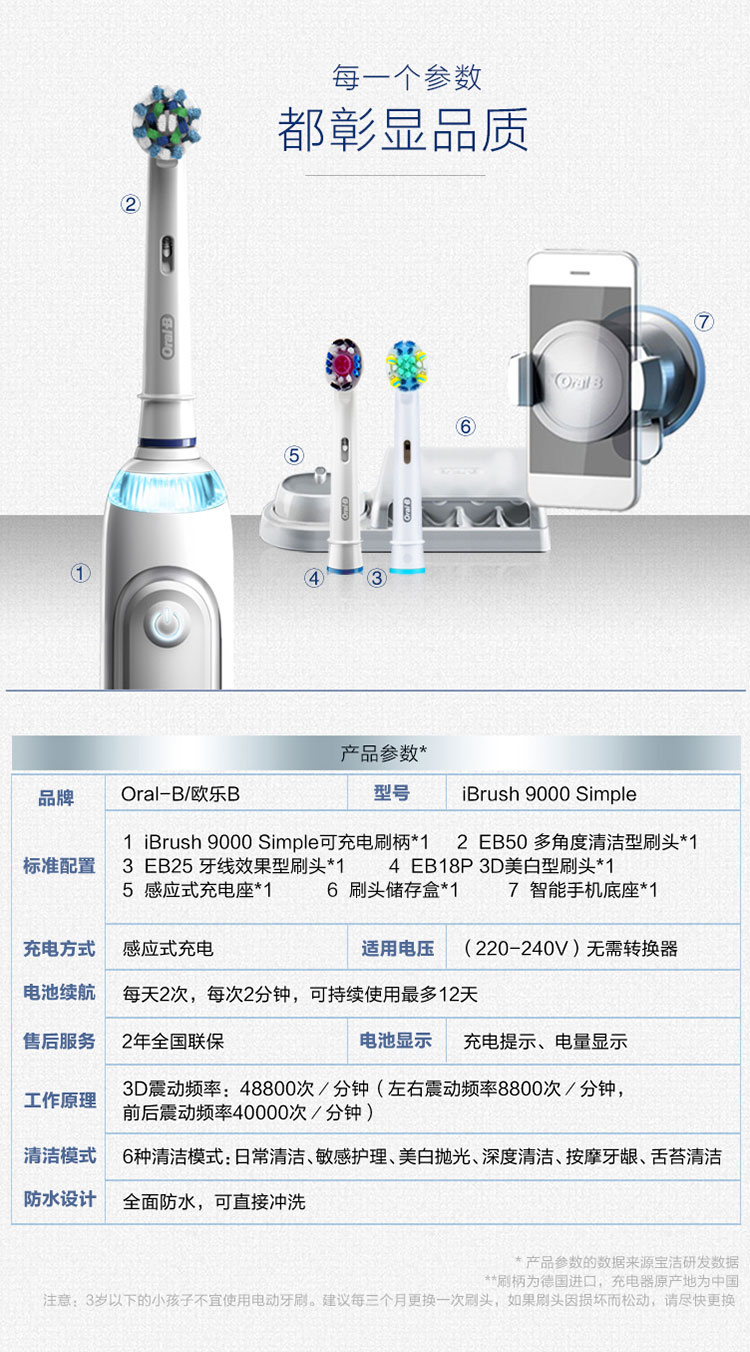 博朗欧乐b 9000系列高端电动牙刷 盒装国行