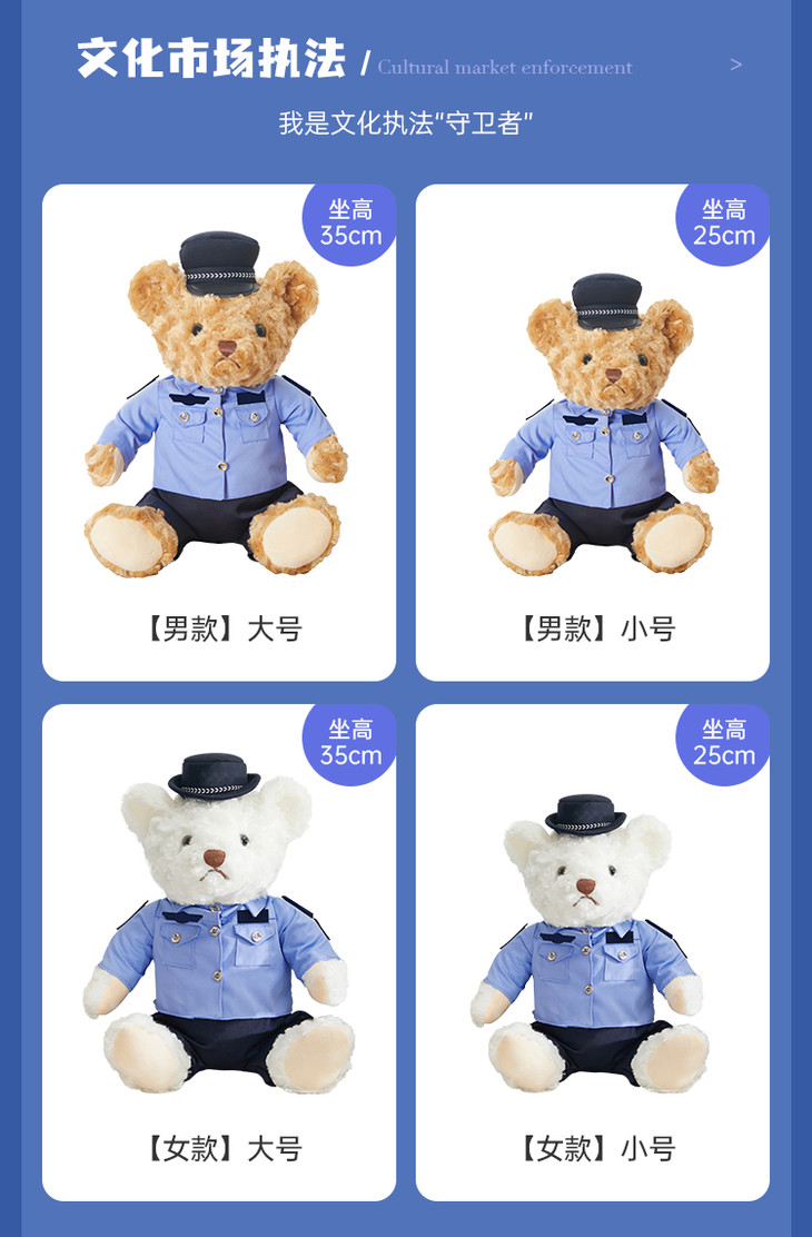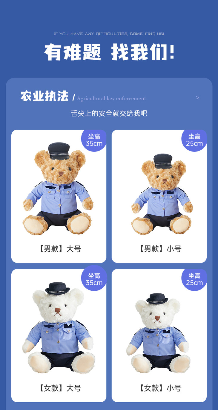 【综合执法熊】创意坐姿小熊毛绒公仔儿童玩偶摆件