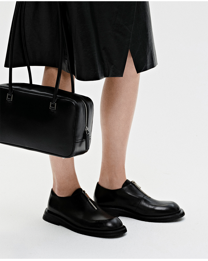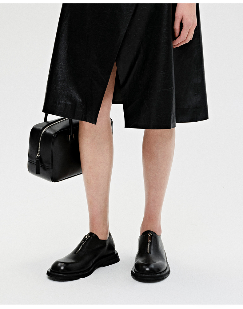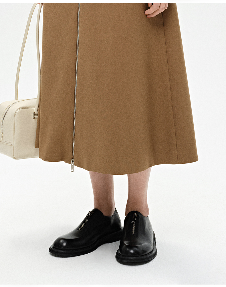 HIDEMI黑色简约大口袋设计感半身A字长裙