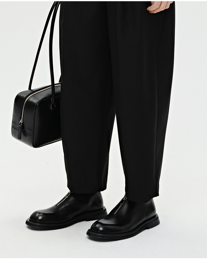 HIDEMI 懒人必备/奶昔白肌理感亚麻套装 圆领衬衫/垂直感侧开衩长裤