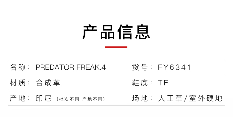 ADIDAS/阿迪达斯 PREDATOR FREAK .4 TF碎钉猎鹰入门级足球鞋FY6341