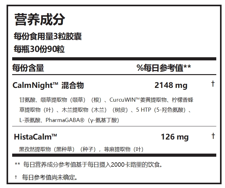 • 通过支持大脑中健康的组胺水平,减少清醒