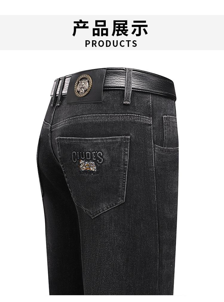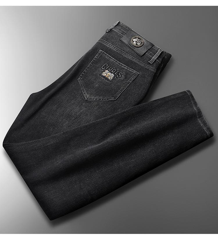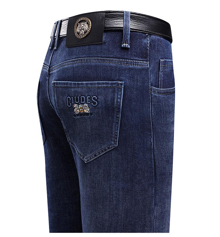牛仔裤男士秋冬季新款加厚虎头刺绣潮流简约百搭弹力直筒休闲长裤