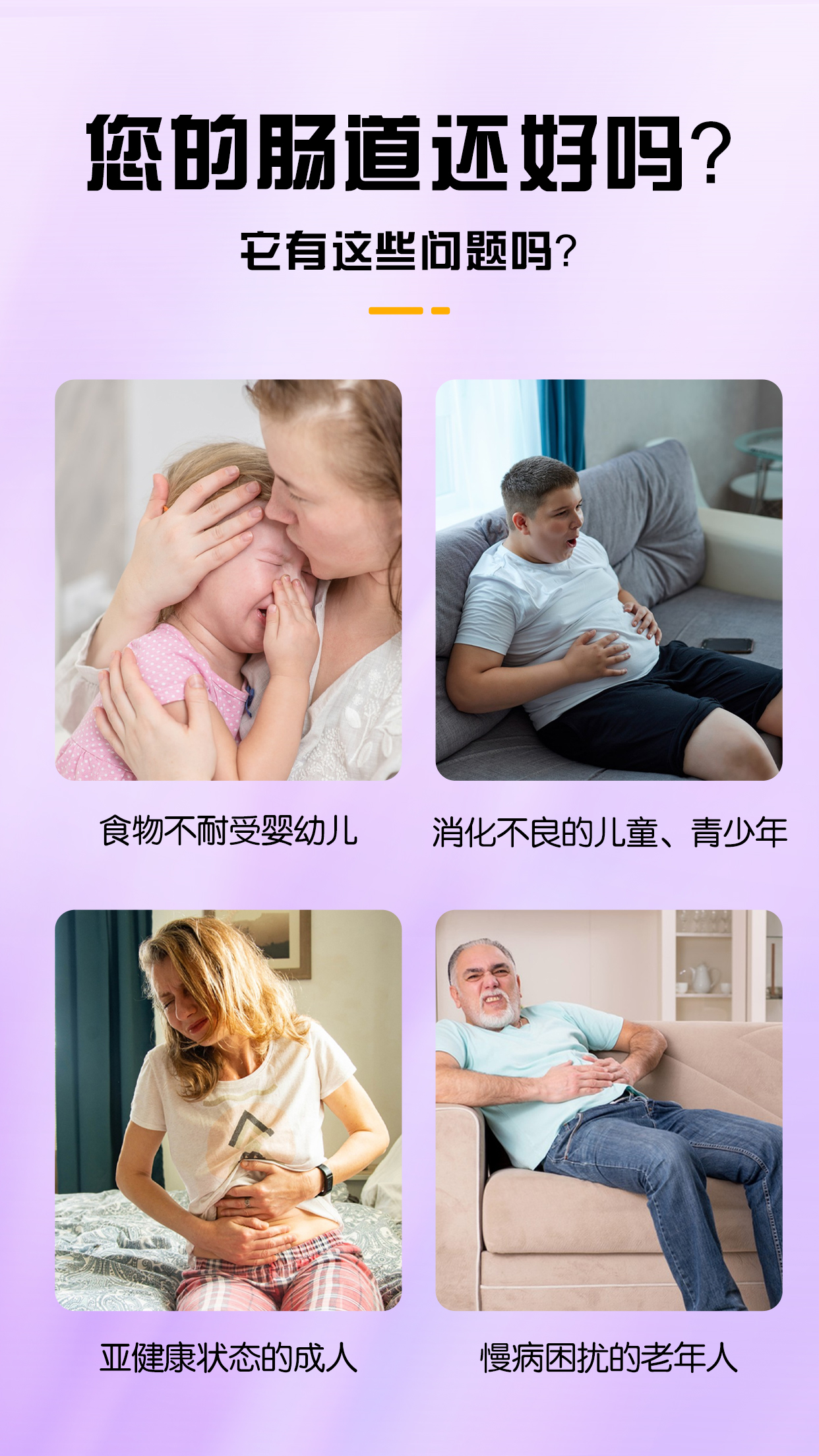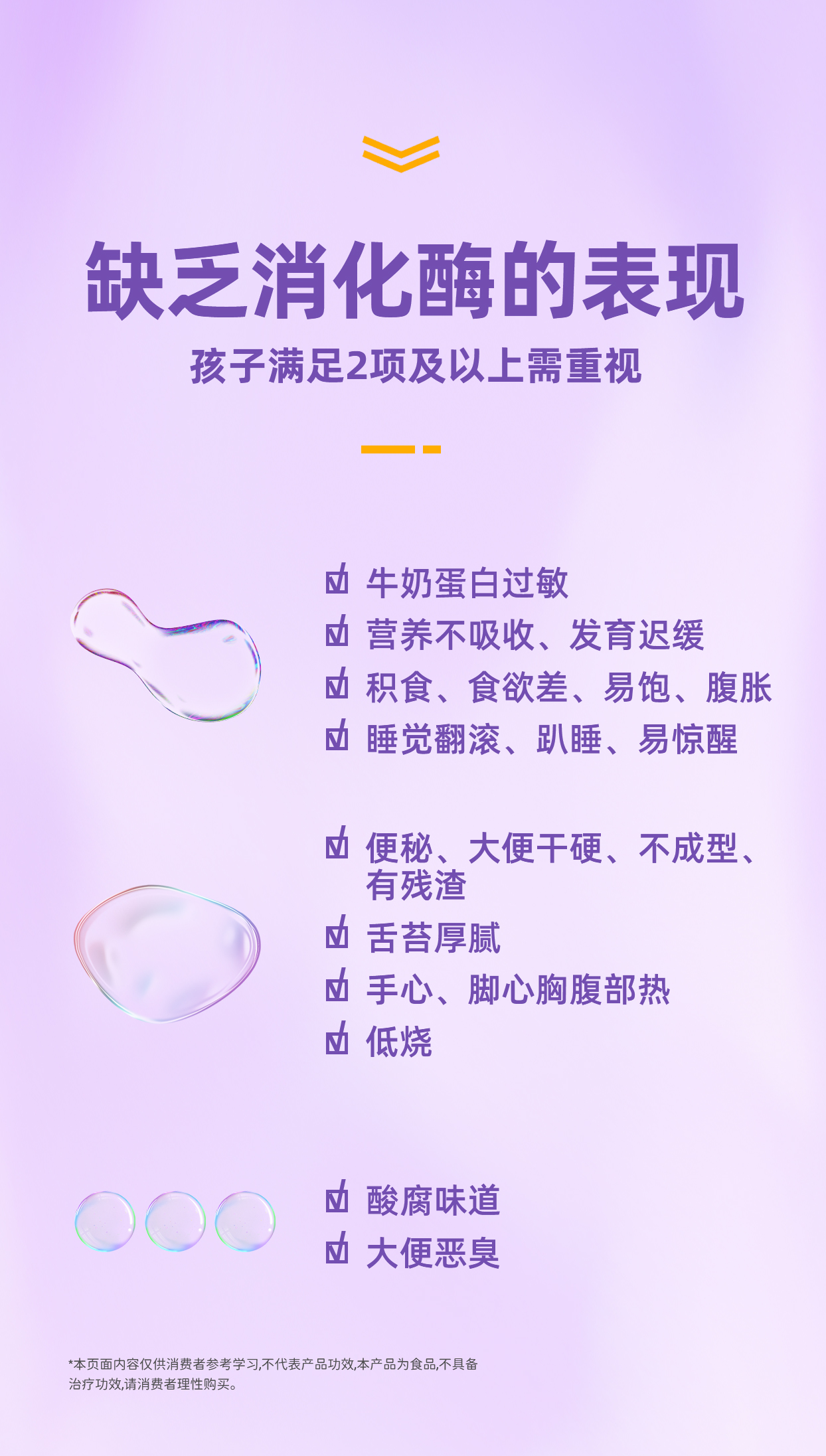 2)症状期间:便秘、积食、牛奶蛋白过敏、食欲不振、营养吸收差、消化不良、厌食、挑食期间,每次1-2袋,每天2次,便秘、积食改在餐前,其他症状餐后或随餐使用。