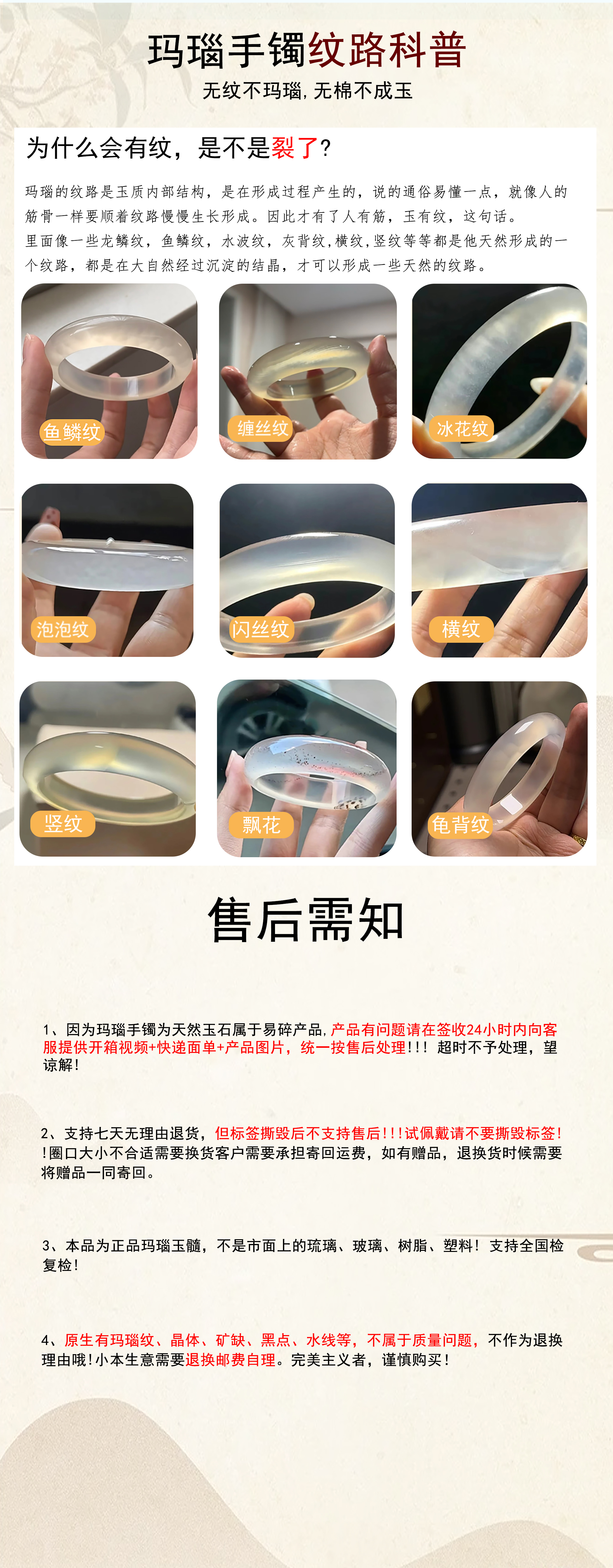 【注意】:因为玛瑙手镯为天然玉石属于易碎产品,务必拍摄开箱视频作为售后依据,无开箱视频产品破损不售后‼‼‼