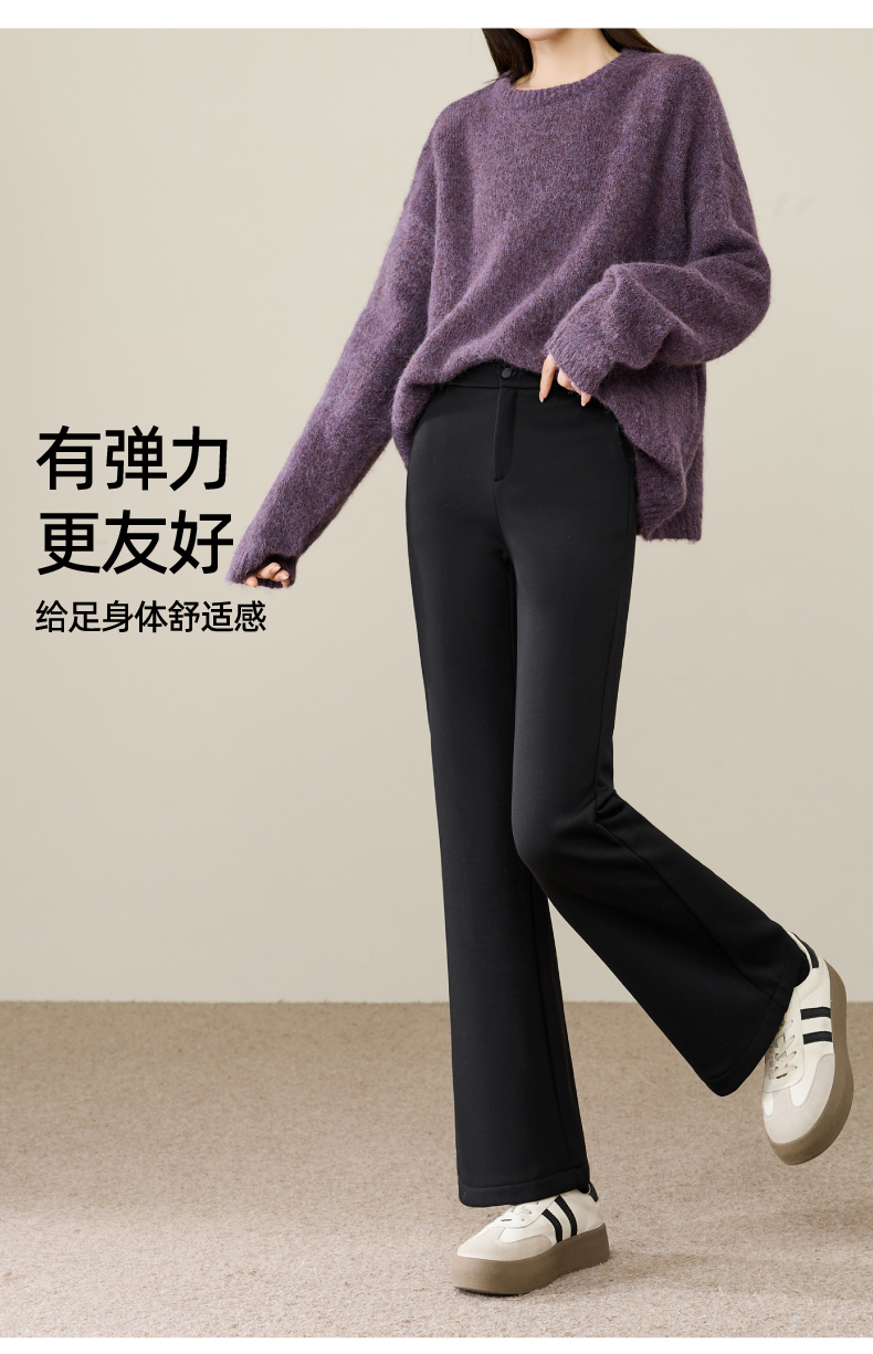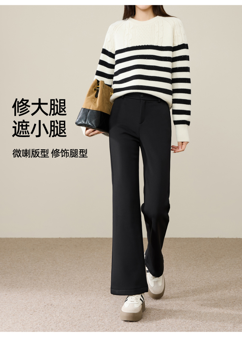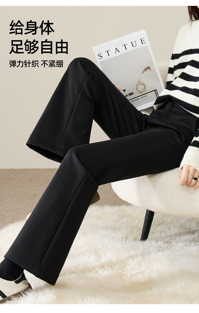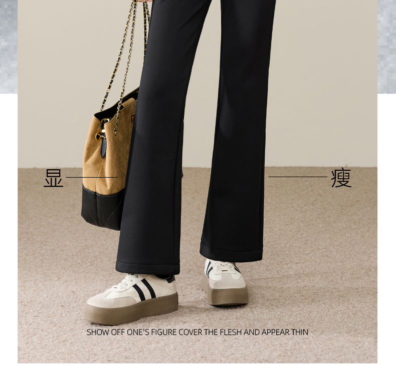 【断码亏本售!加绒-九分喇叭裤】逸阳冬玻尿酸绒高腰弹力通勤休闲小个子西裤9916R