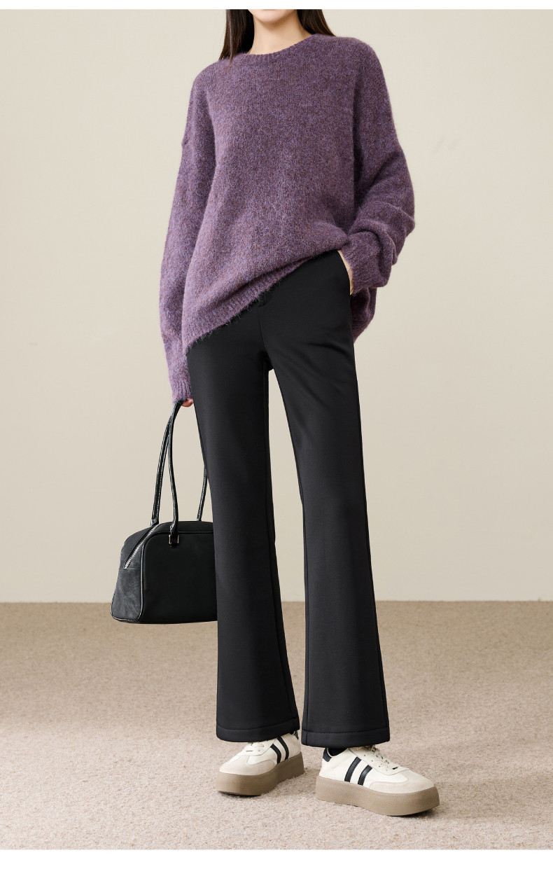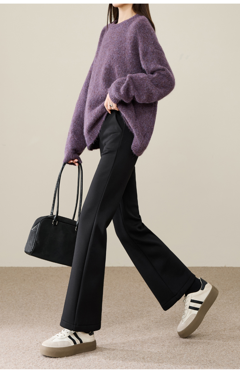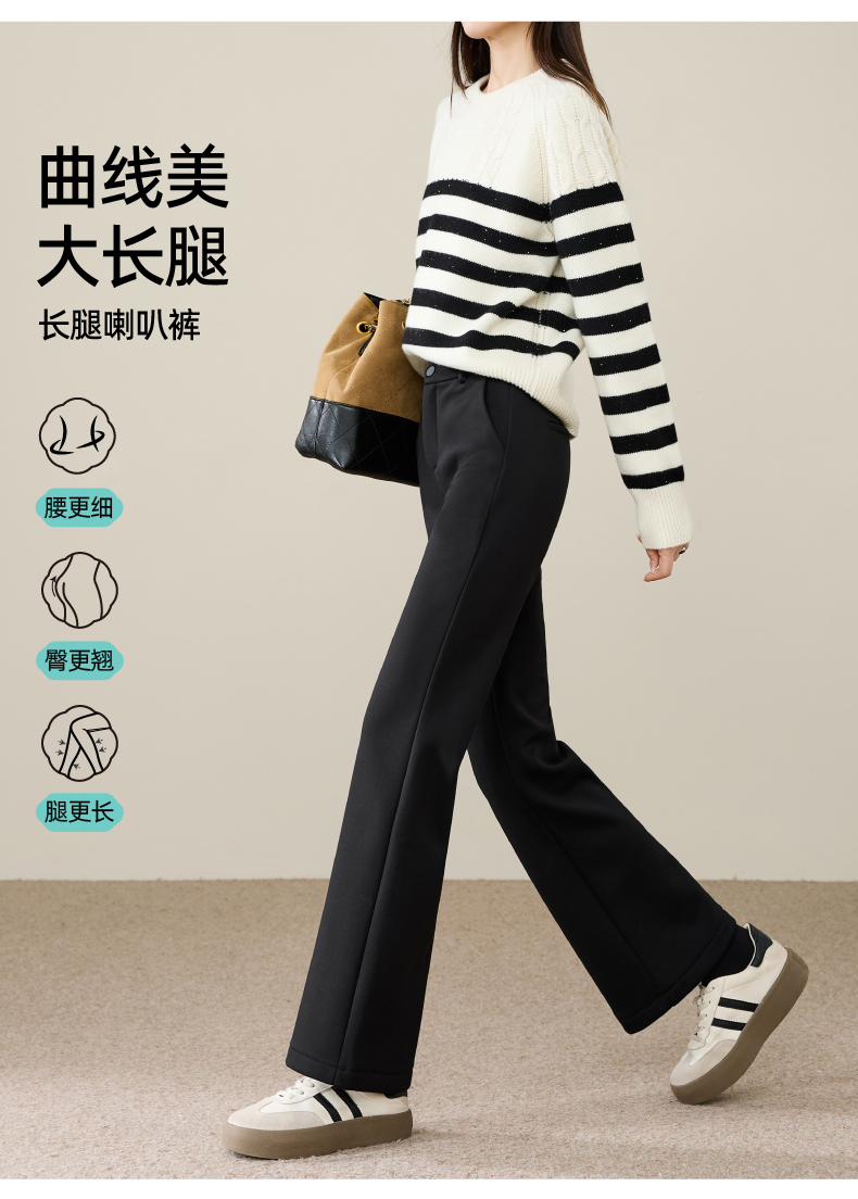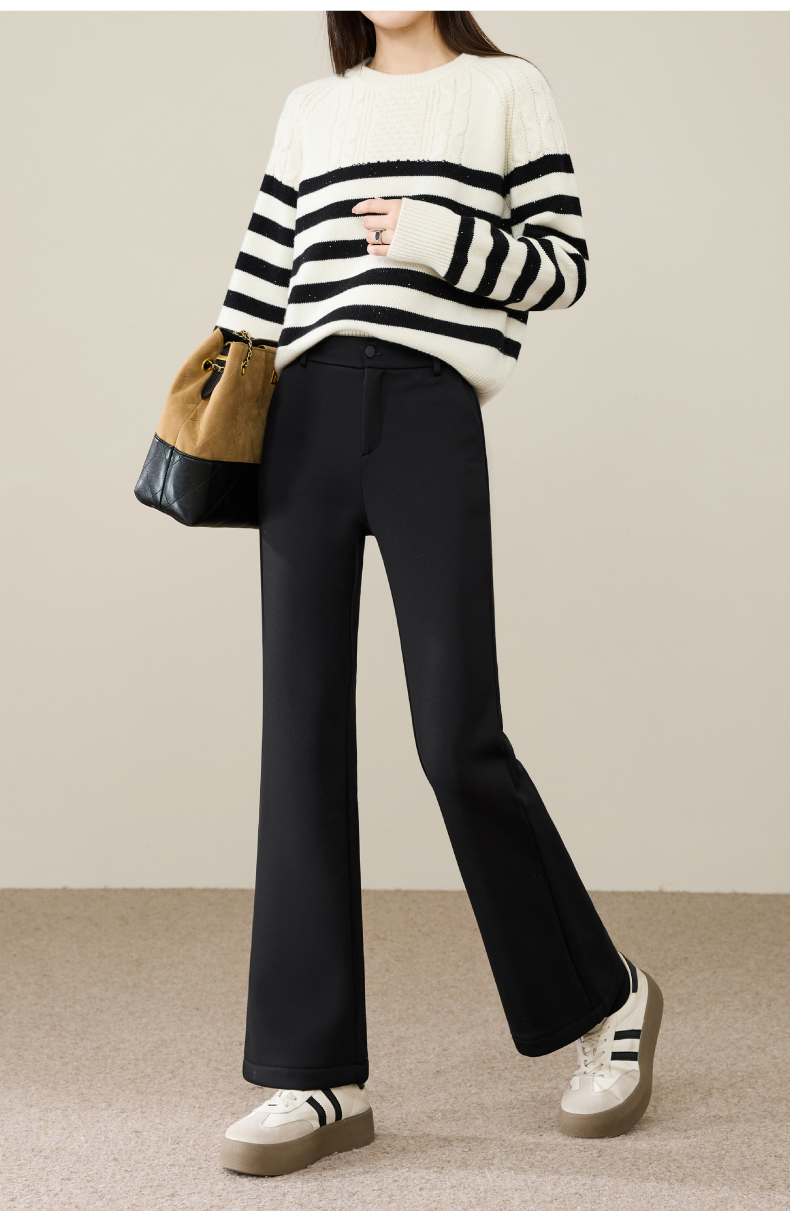 【断码亏本售!加绒-九分喇叭裤】逸阳冬玻尿酸绒高腰弹力通勤休闲小个子西裤9916R