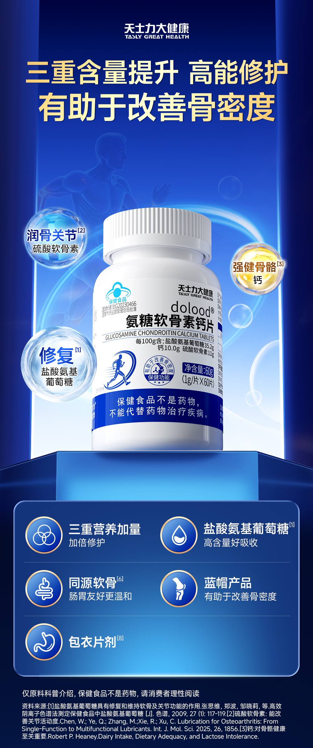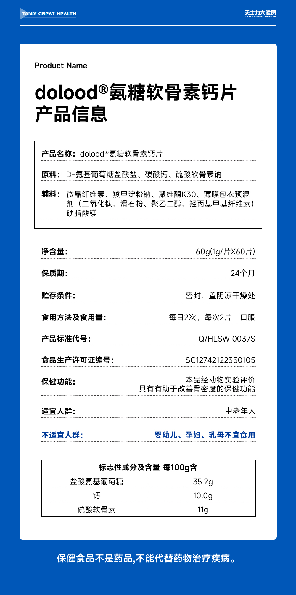 天士力大健康dolood®氨糖软骨素钙片(1g*60片)