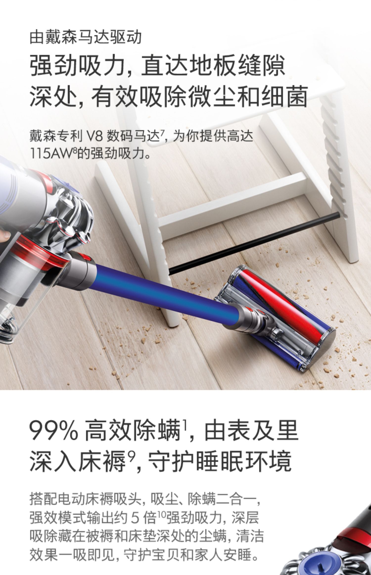 【预售一周发货】Dyson戴森V8Fluffy plus小型手持无线吸尘器家用大吸力除螨仪【团购款非质量问题不退换】