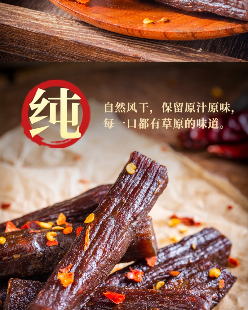 【真鲜真空包装,蒙休手撕风干牛肉干】手撕风干牛肉层层肉香指尖留香,每一口都有草原的味道,内蒙古特产牛肉条小吃原味零食真空独立袋装QQ