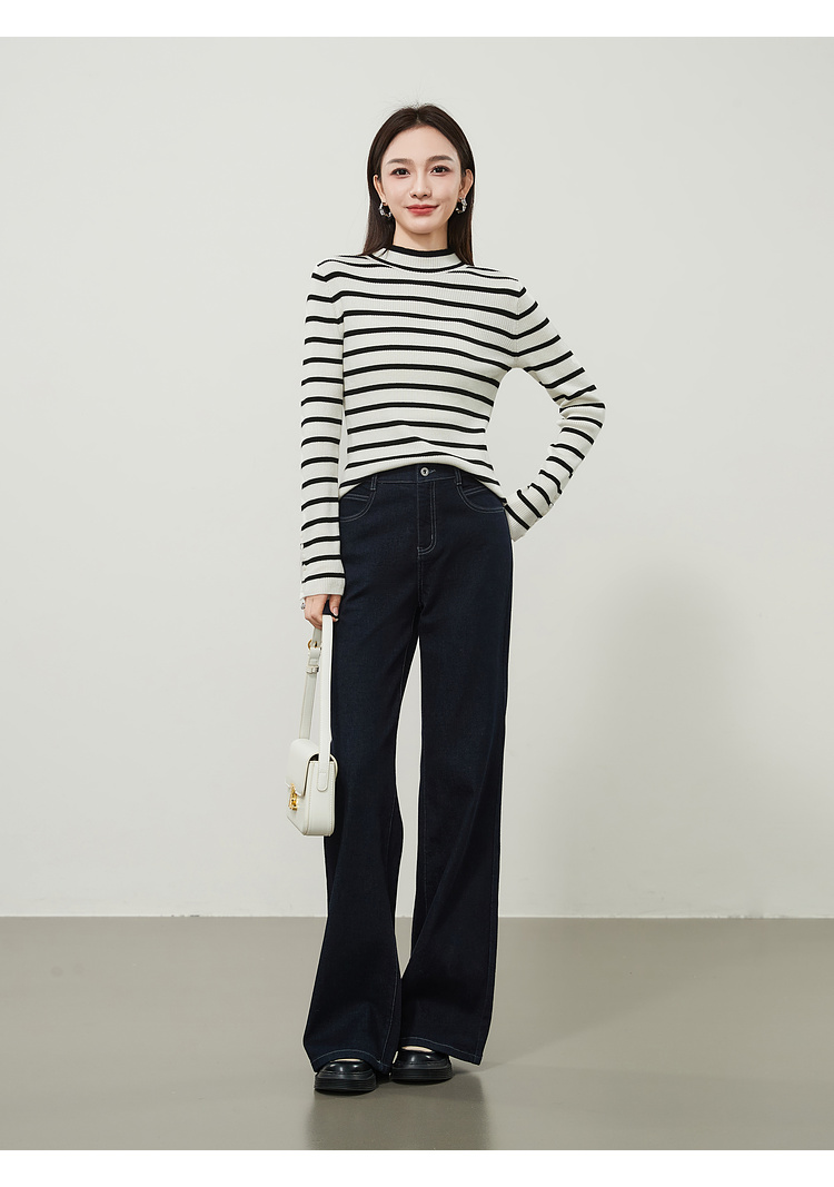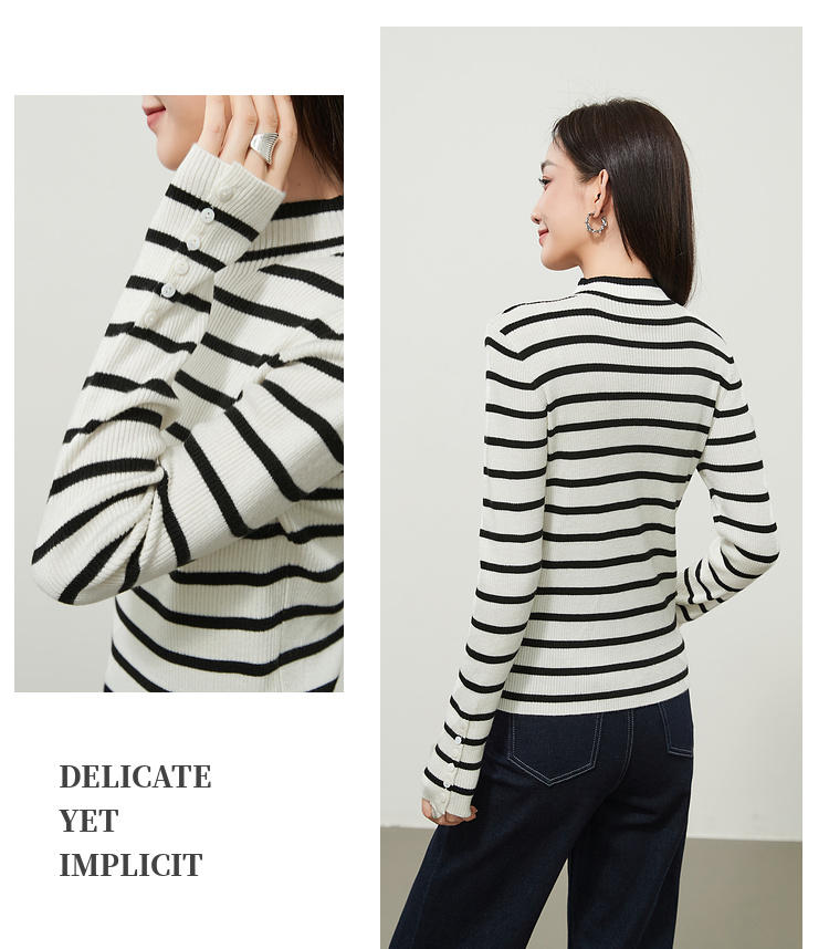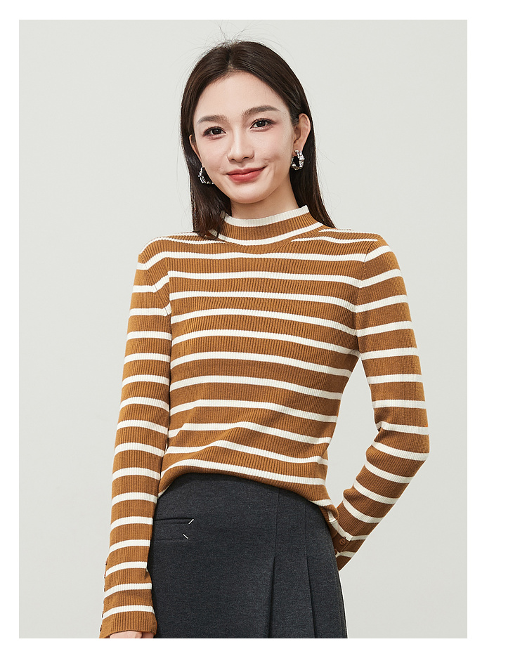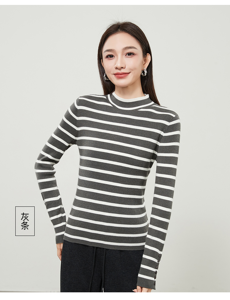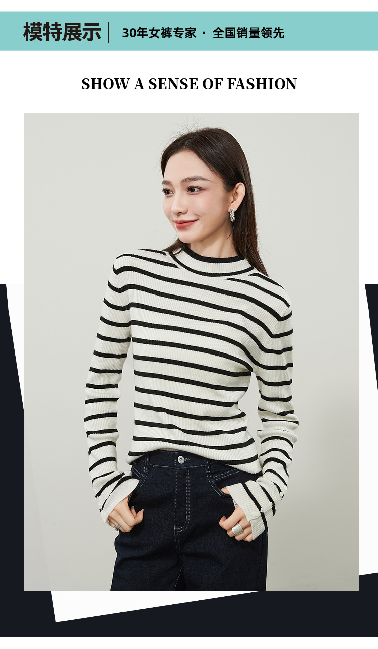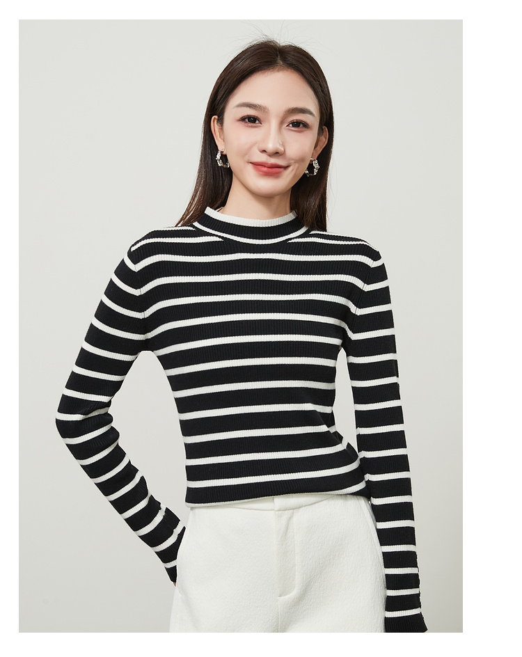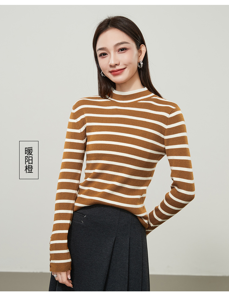 【半高领-条纹-羊毛衫】逸阳秋冬新品气质款撞色条纹针织衫打底衫毛衣7922