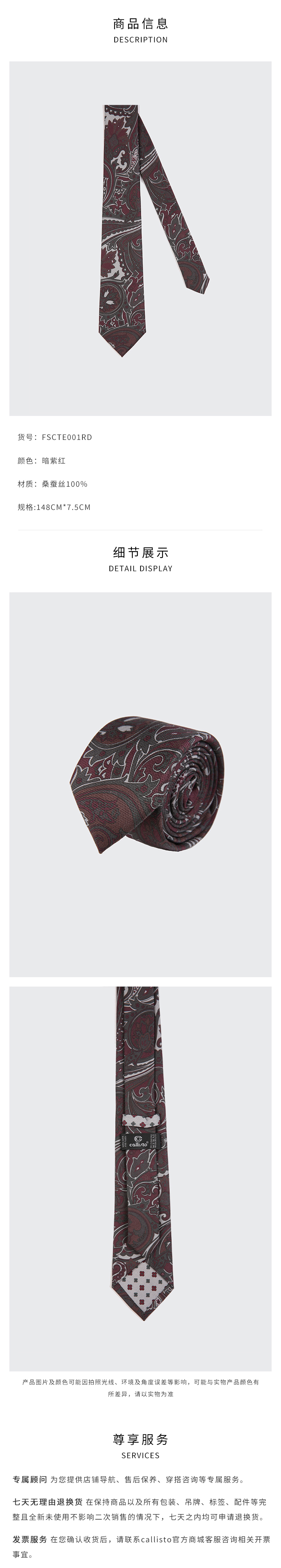 callisto暗紫红全桑蚕丝领带 FSCTE001C RD