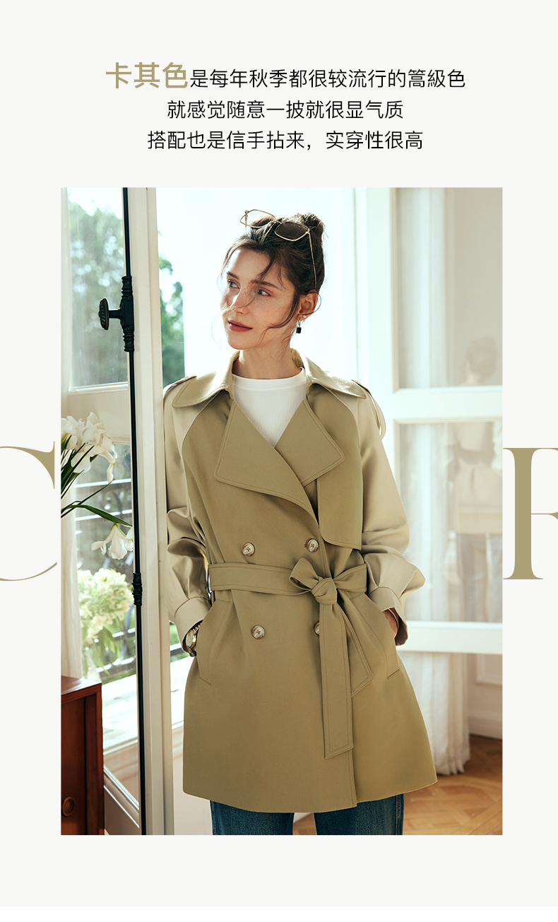 OLrain欧芮儿法式卡其色风衣外套女秋季2023年新款宽松小个子上衣