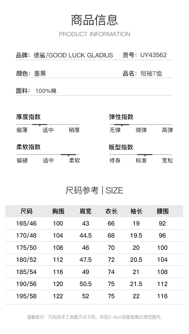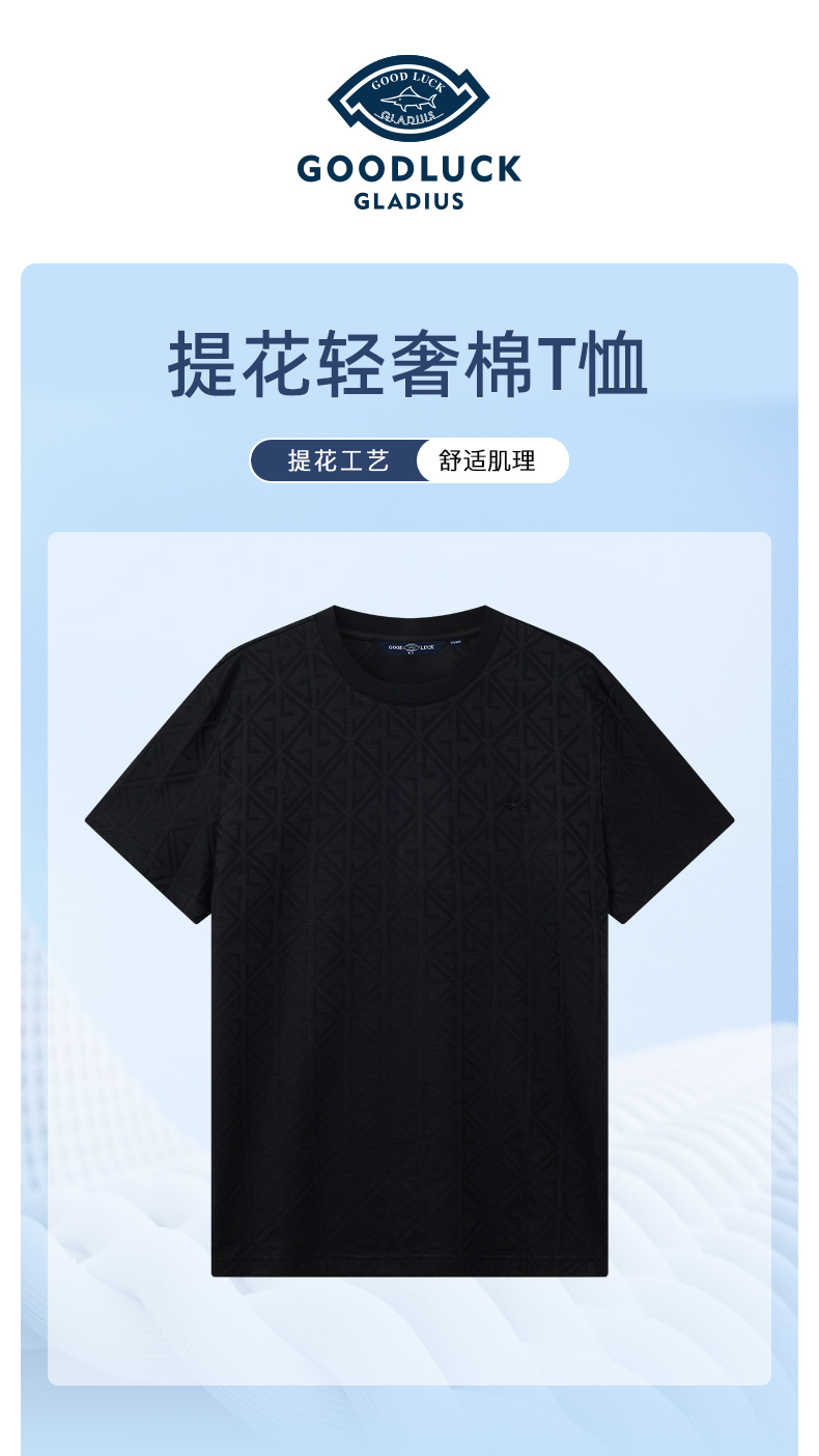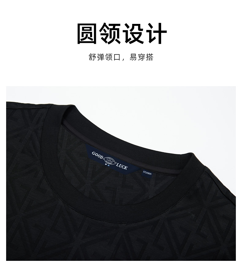 【纯棉提花】德鲨鲨鱼黑色短袖T恤男2026夏新款休闲打底衫