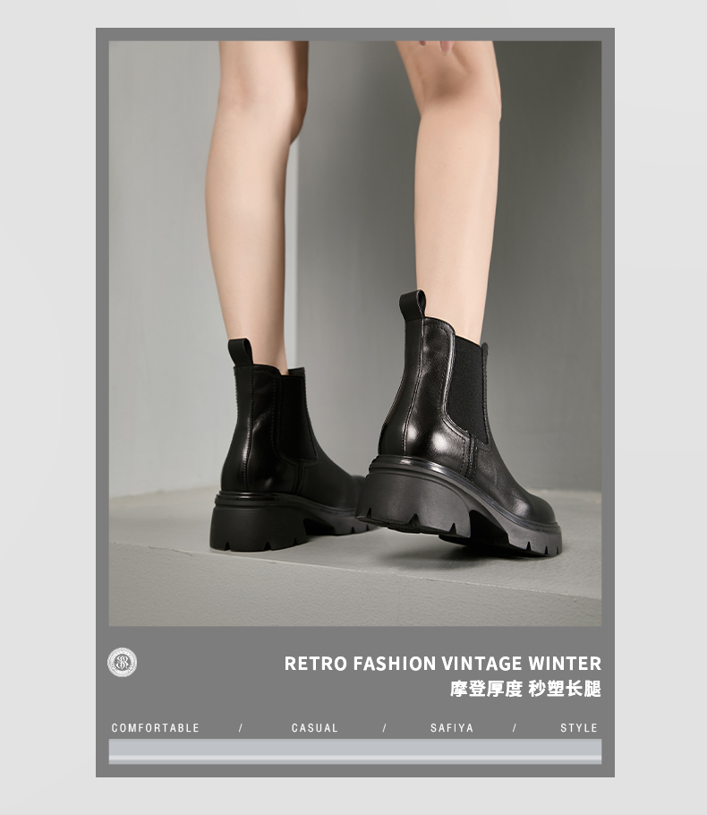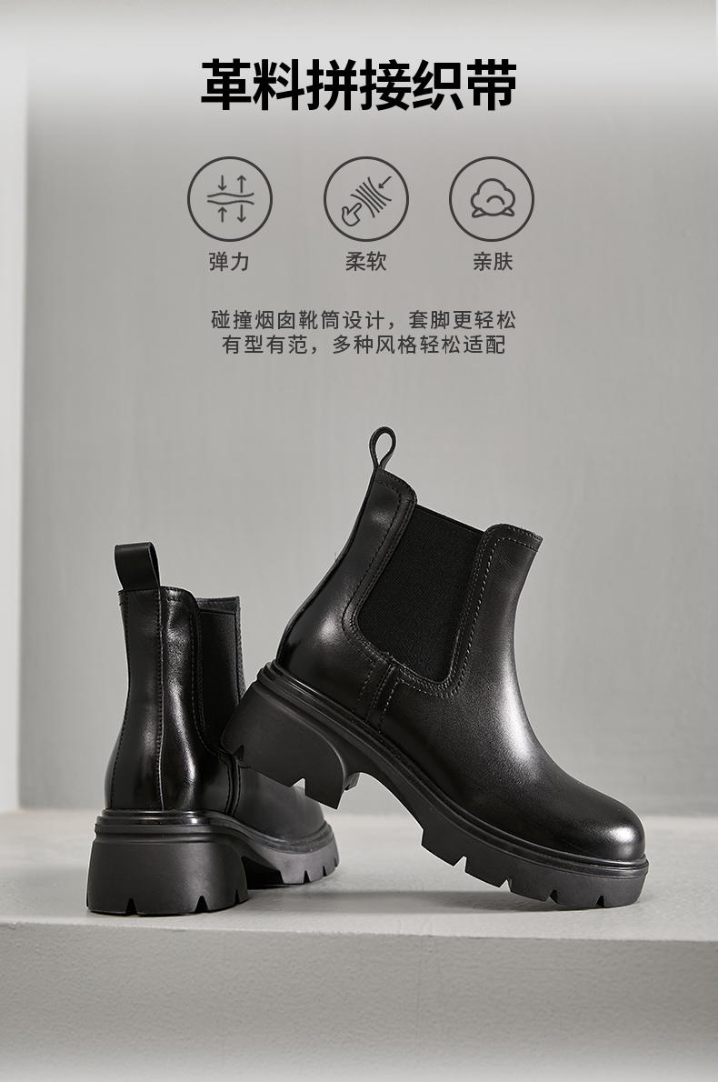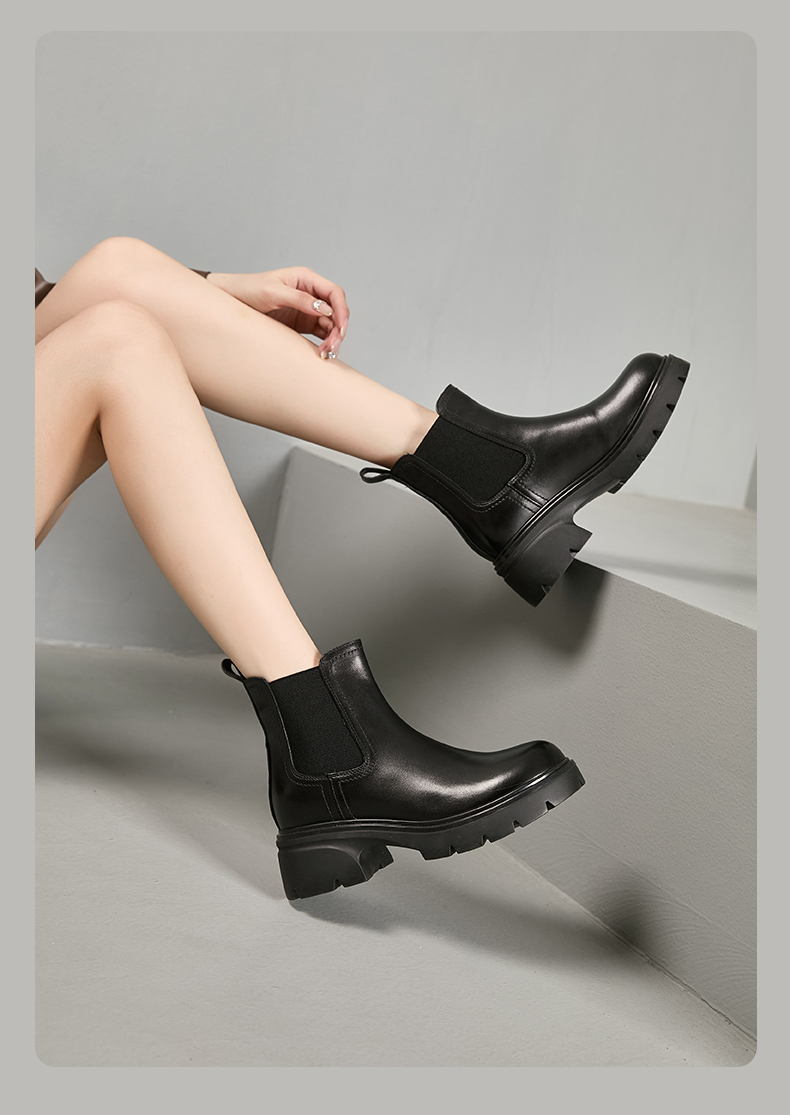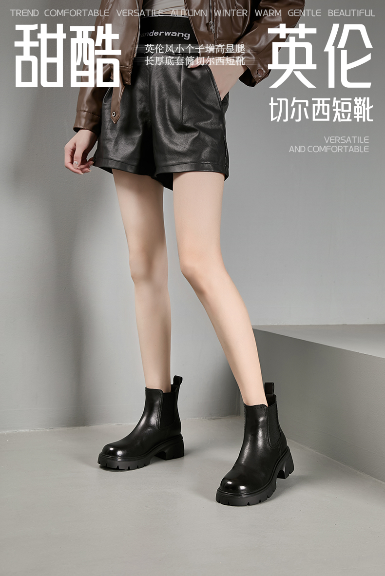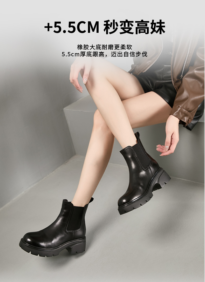 Safiya/索菲娅2024英伦风小个子增高显腿长厚底套筒切尔西短靴 SF44116025