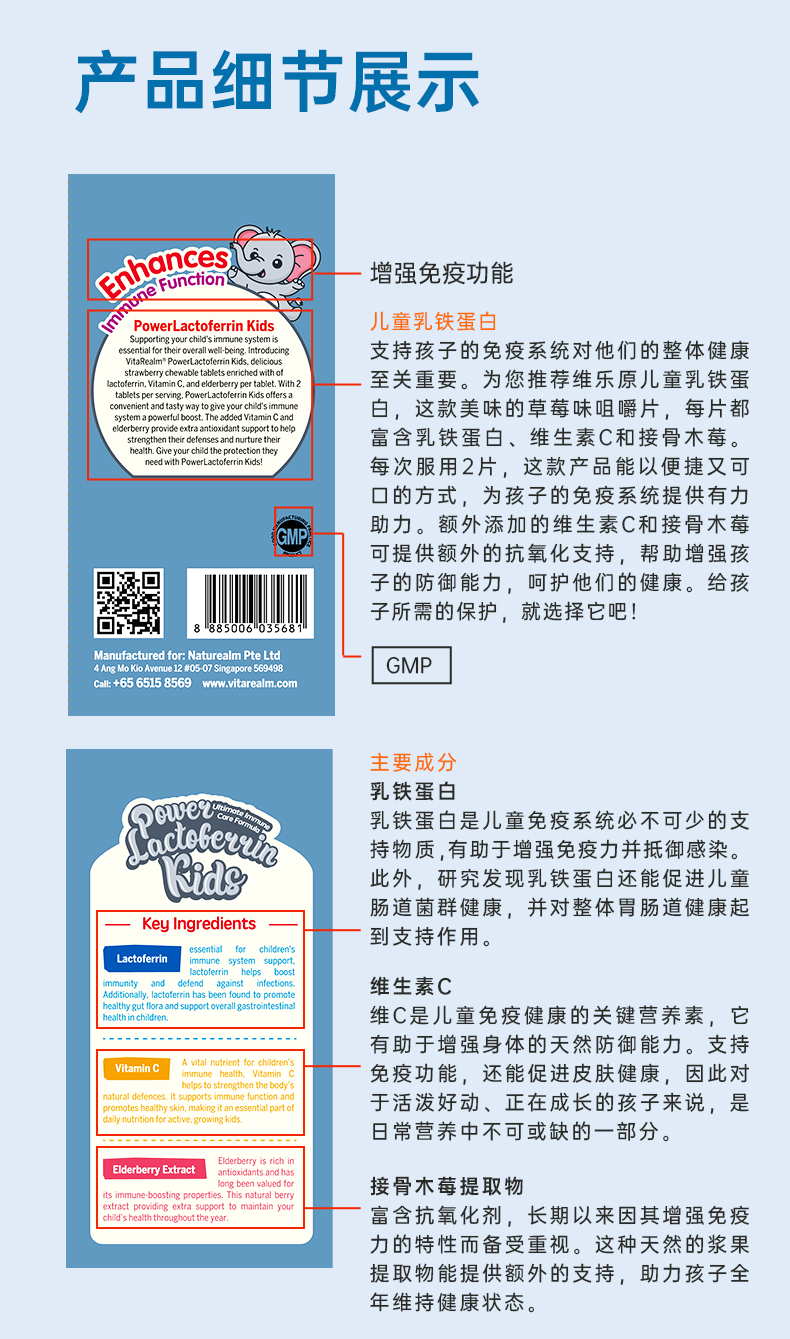VitaRealm维乐原儿童乳铁蛋白+接骨木莓双效合一咀嚼片40粒SY