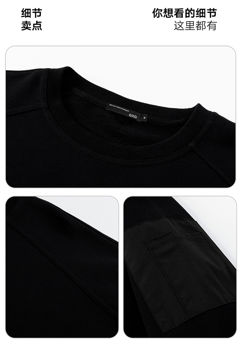 GXG男装25秋季简约百搭宽松休闲运动户外男式圆领卫衣K&C