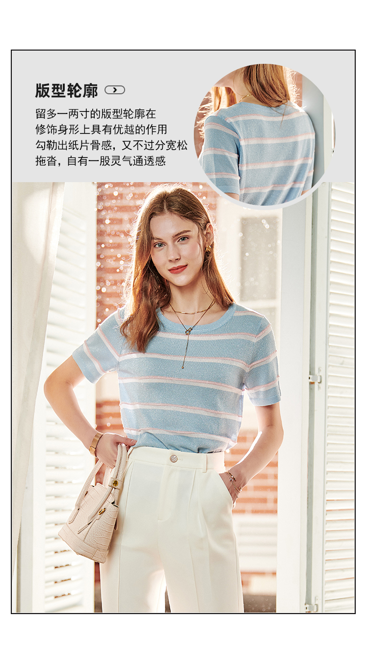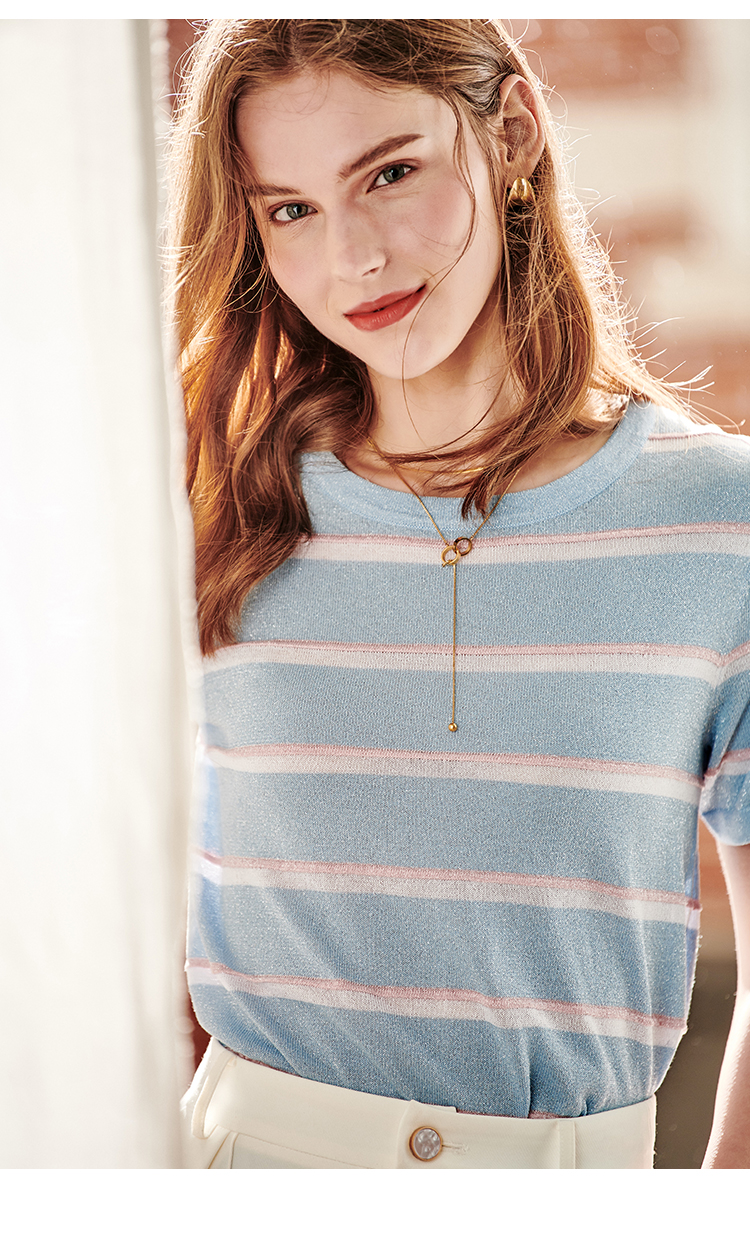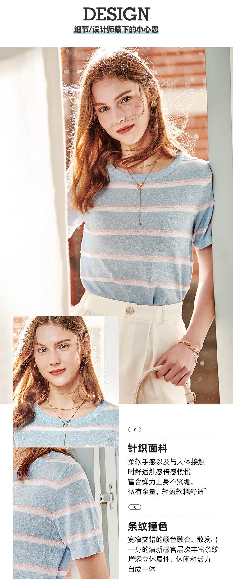 欧芮儿短袖针织衫女新款宽松显瘦韩版百搭条纹体恤上衣潮