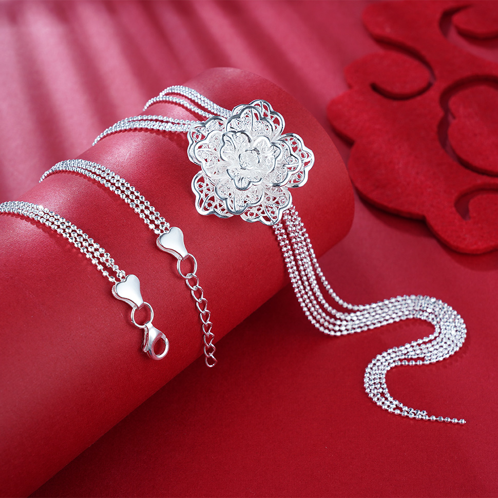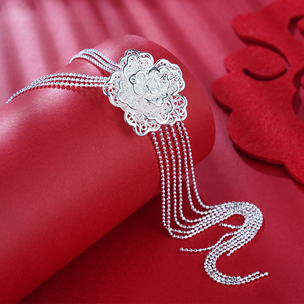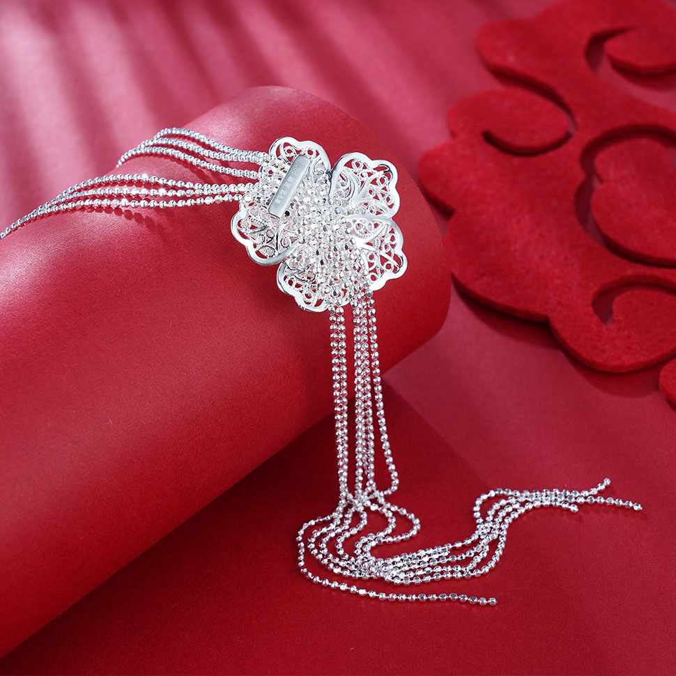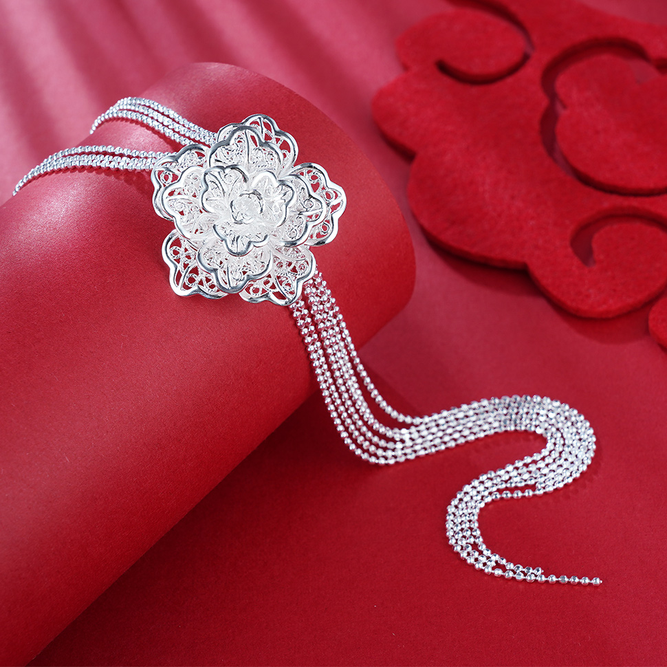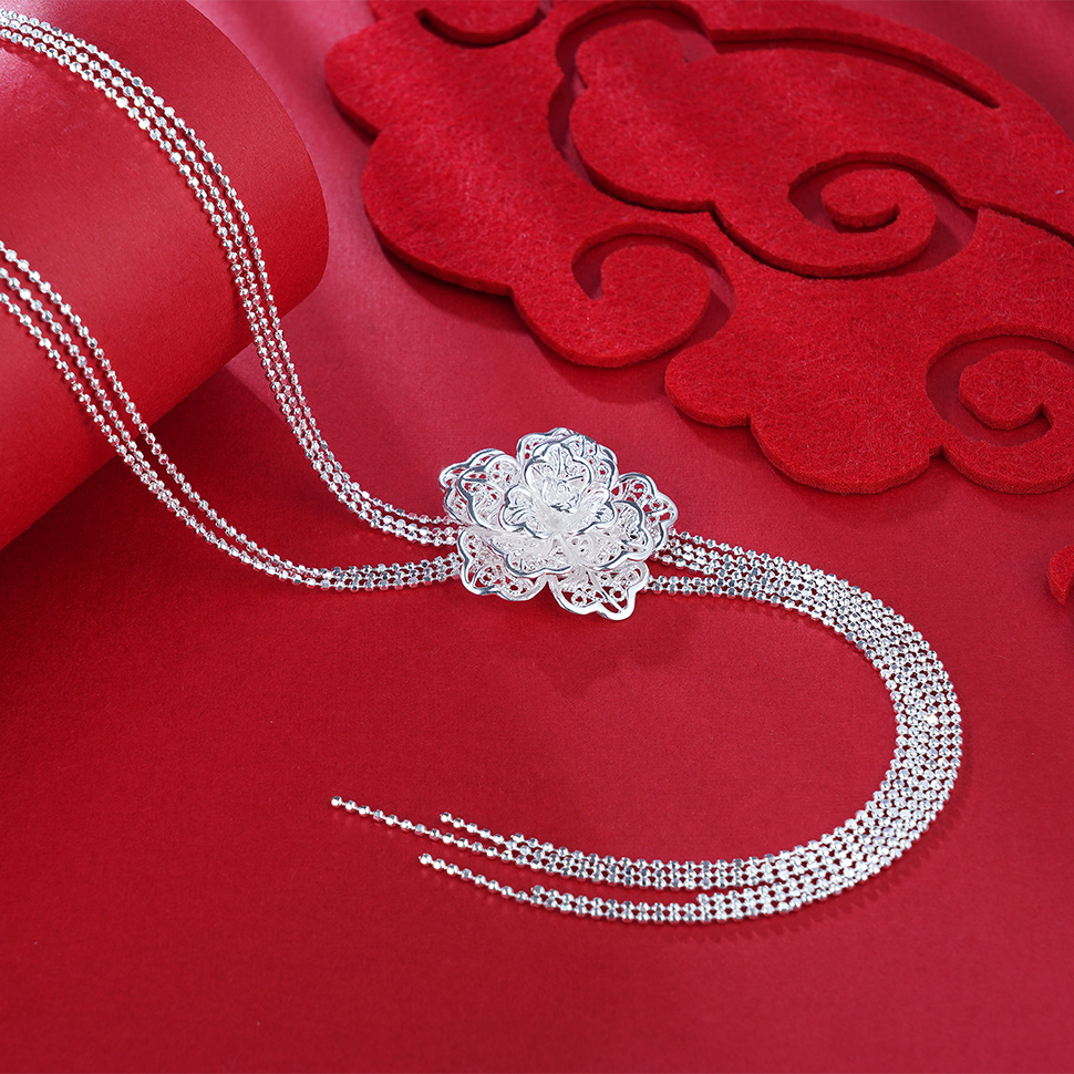 S990银牡丹套链项链【MDXL001】黄飞达花丝2101