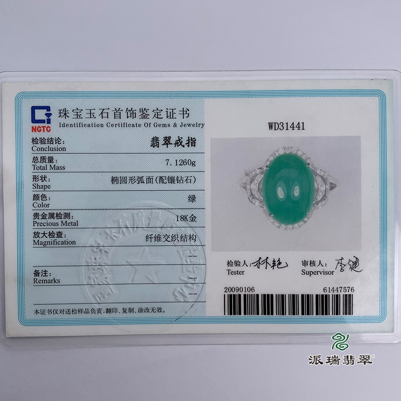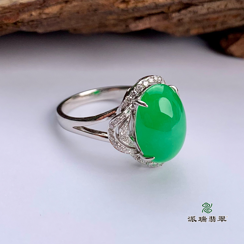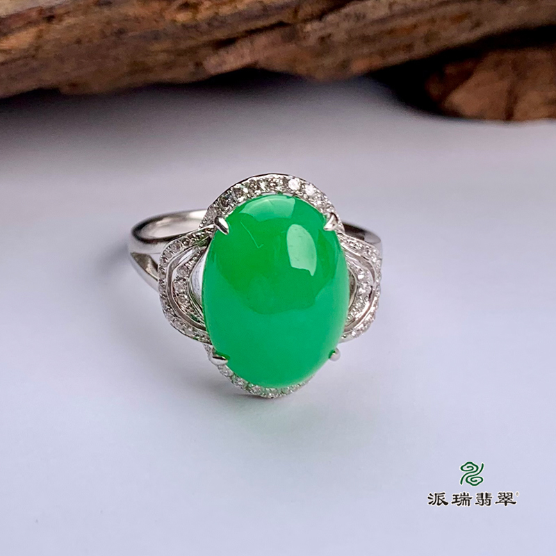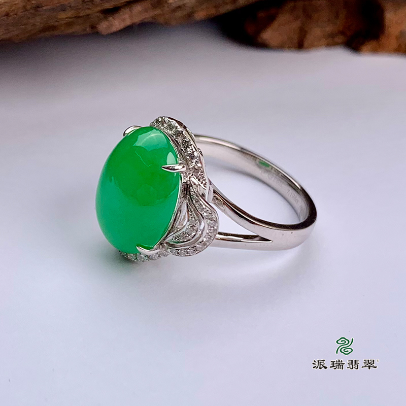 派瑞翡翠 18k金翡翠戒指 冰种 绿色