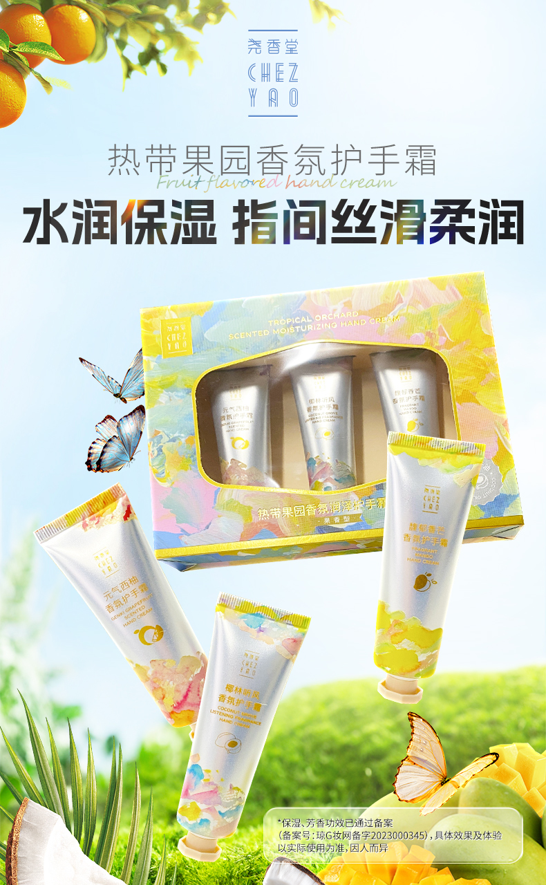尧香堂热带果园香氛润泽护手霜套盒滋润手部保湿补水润手霜30g*3