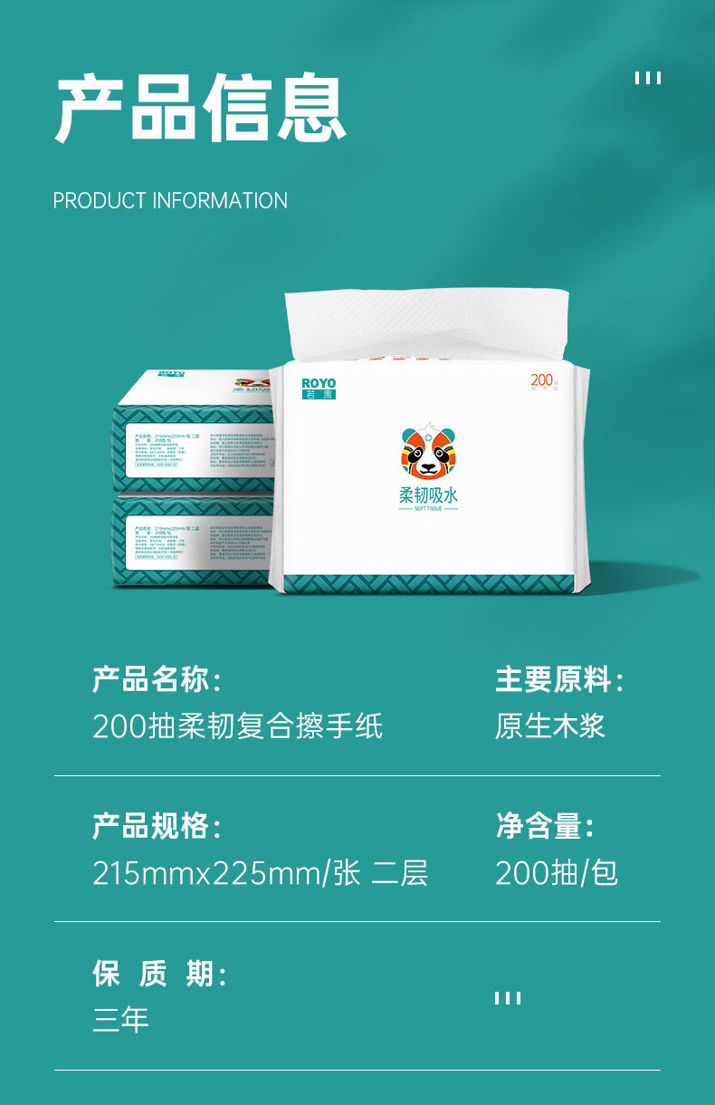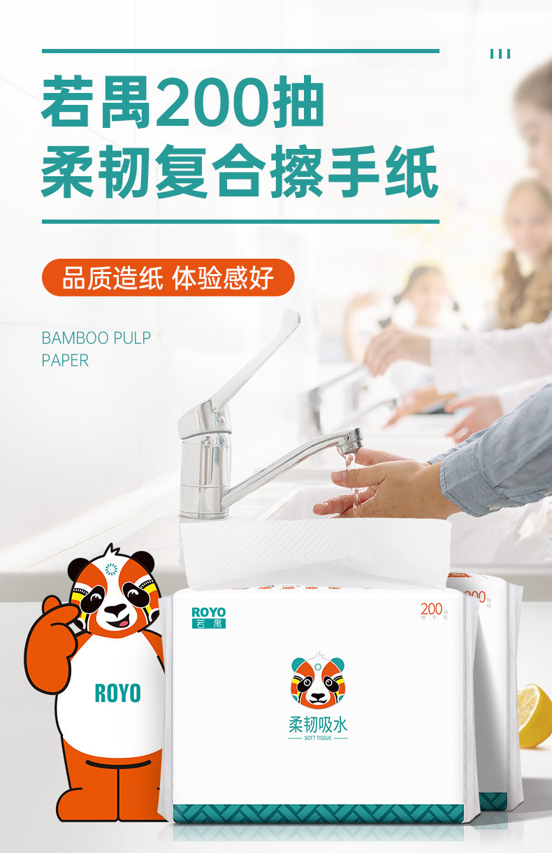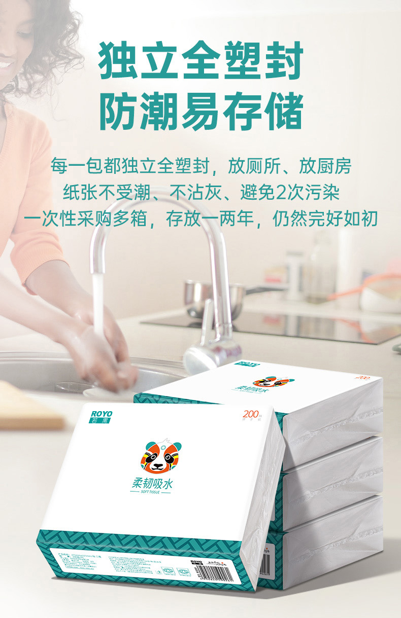若禺擦手纸抽取式2层加厚加量200抽/包原生木浆抽纸柔韧吸油吸水1件20包RC005F