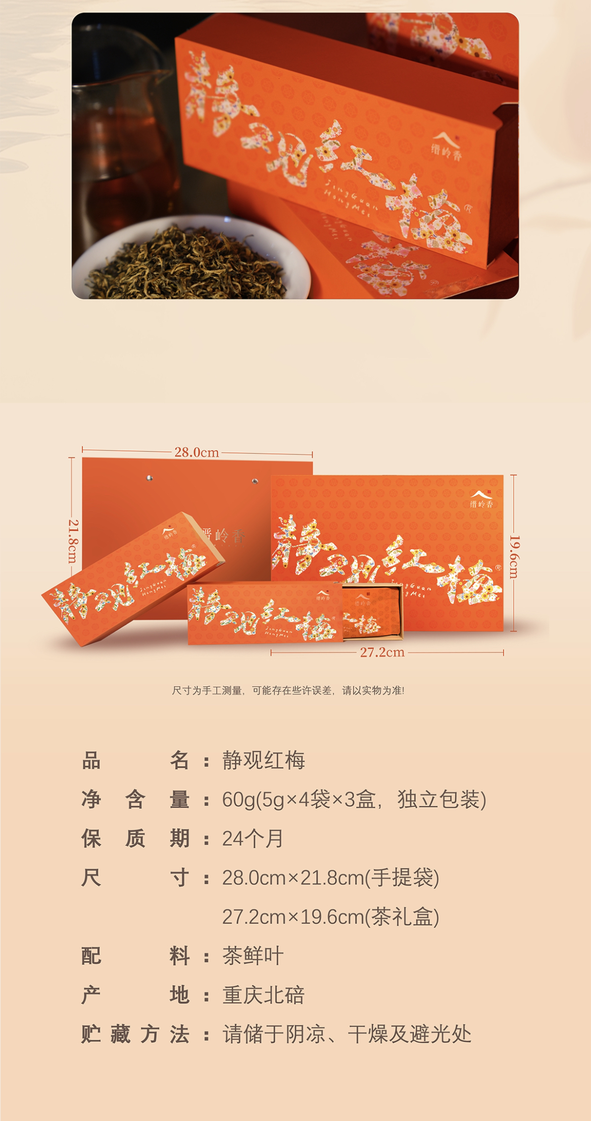 上新特惠!【腊梅红茶】重庆花茶/重庆市北碚区/来自大重庆的花香茶礼/金毫满披/腊梅花香动人/滋味甜/口感醇/回味爽/5g*4袋*3盒/60g