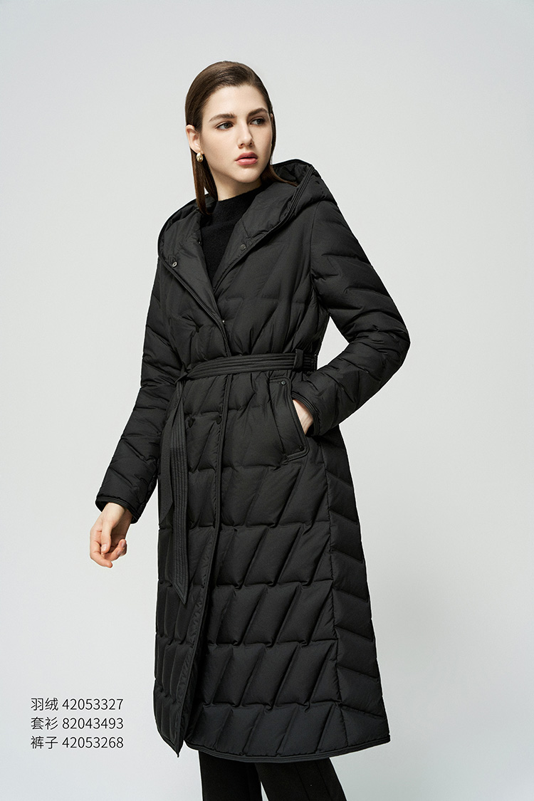 【中长款连帽羽绒服】25年秋冬新品女士90白鹅绒系带收腰防风保暖外套