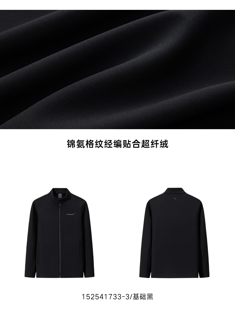 安踏针织立领运动外套男士黑色运动服上衣152541733-3