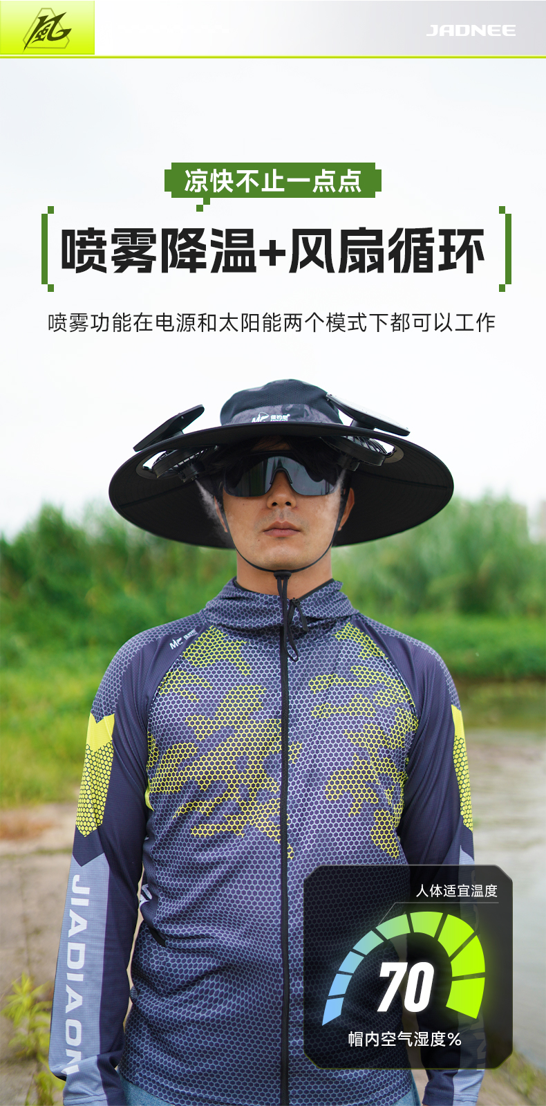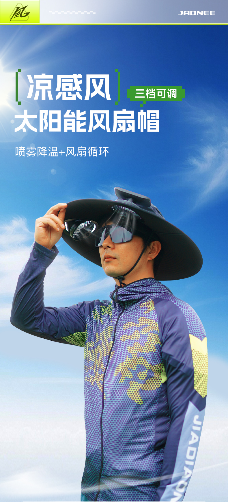 佳钓尼新款太阳能凉感风扇帽,让你炎炎夏日感受三档风力调节的舒适