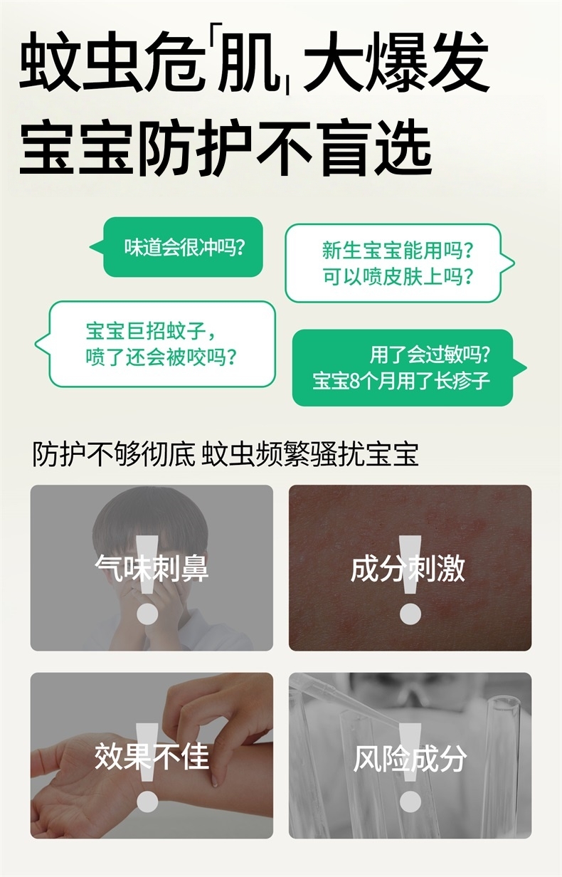 产品须知:10%驱蚊酯款驱蚊液适合6个月大以上的人群使用。